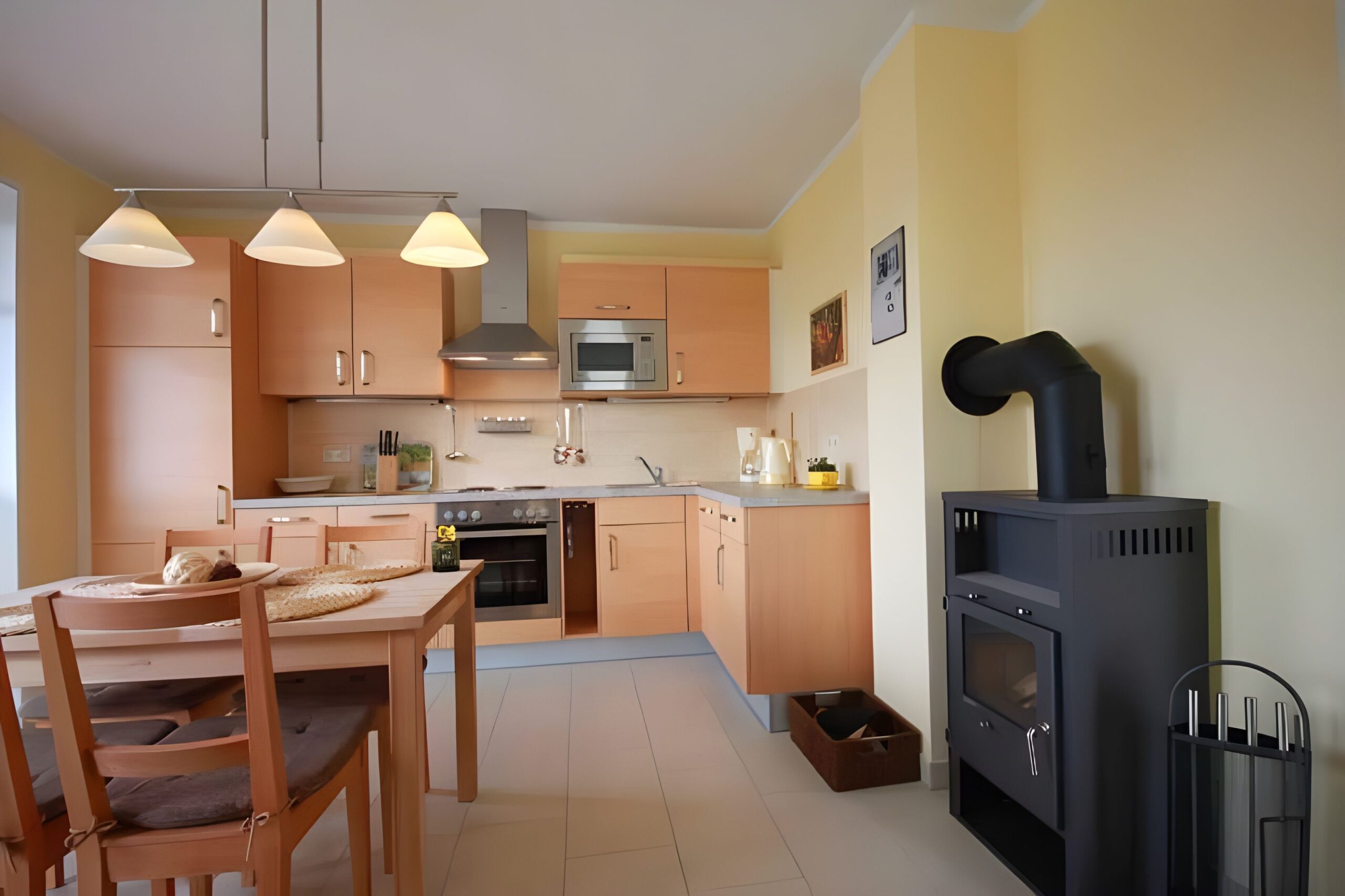 Die Küchenausstattung, ist befriedigend. 2 Töpfe ( ein kleiner und ein ganz großer ) sind zu wenig, wobei bei dem kleinen der Deckel nicht passt. Die Kopfkissen sind mit Federn, gefüllt ( Allergien ) zum Glück hatten wir unsere eigenen dabei. So ist die Wohnung wunderschön, würde ich immer weiter empfehlen. Das Börgerende, keinen Bäcker hat ist das einzige Manko, an diesem schönen, ruhigen Ort.