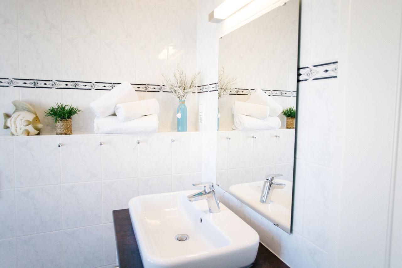 Der Eingangsbereich empfängt Sie mit einer einladenden Diele inklusive Garderobe mit großem Spiegel sowie einem separaten Abstellraum, in dem Sie bequem Gepäck, Vorräte oder Strandausrüstung unterbringen können.