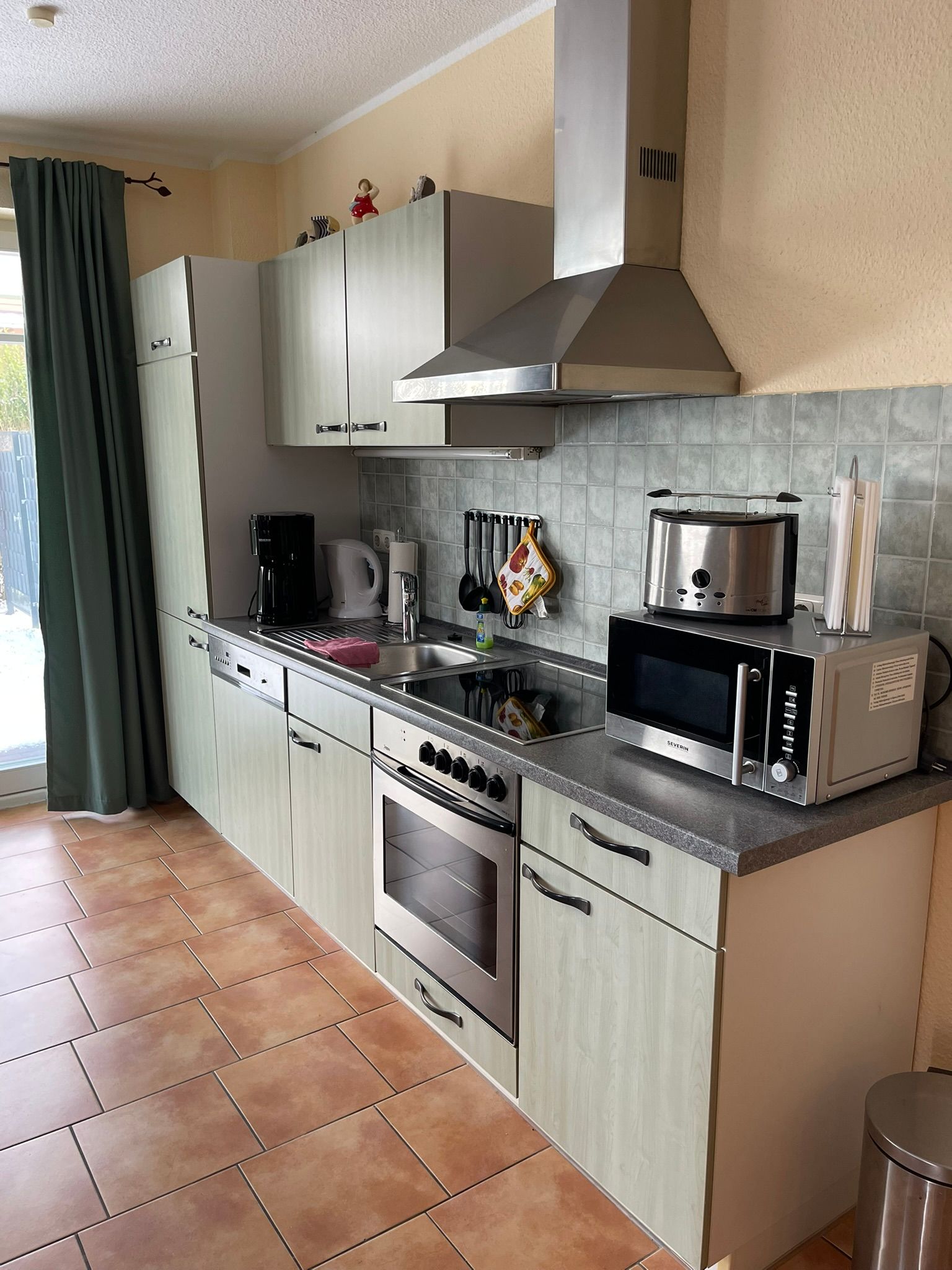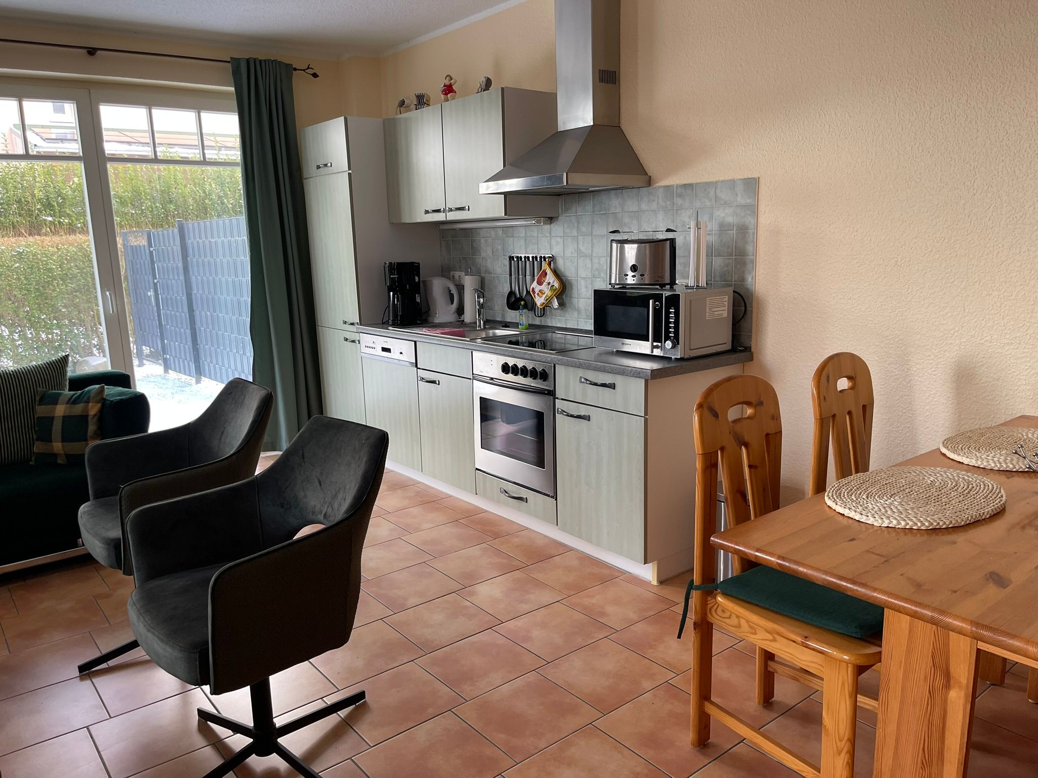 (inkl. Geschirrspüler, Kaffeemaschine, Mikrowelle, Gefrierfach), Esstisch und