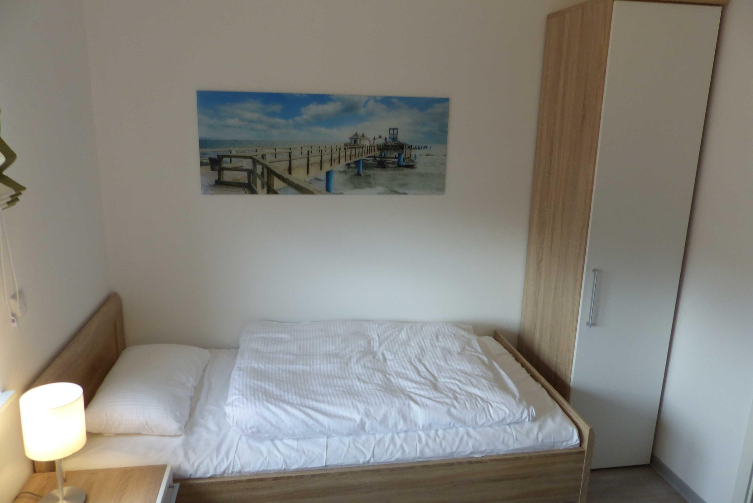 Das größere Schlafzimmer empfängt Sie mit einem gemütlichen Doppelbett. Das