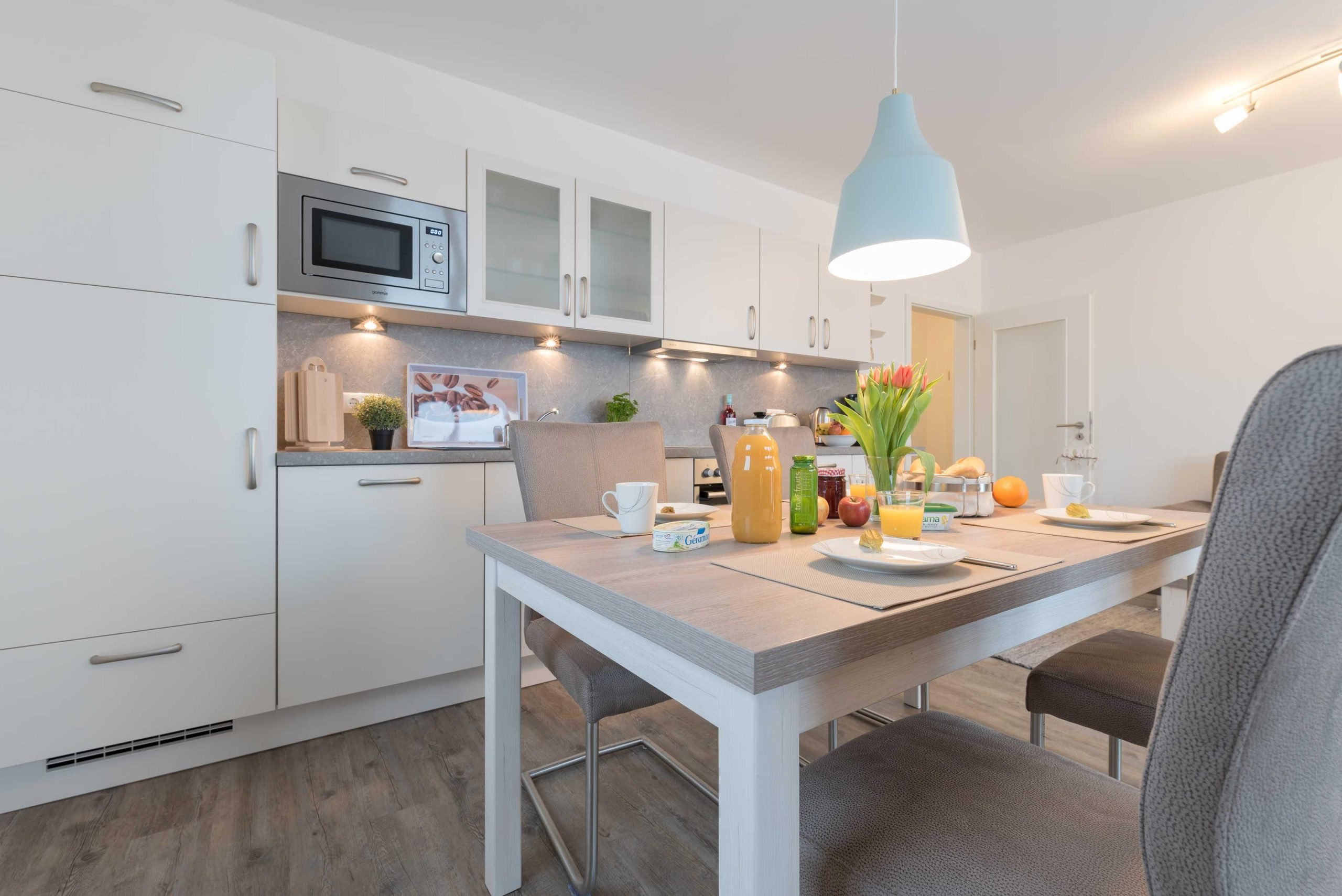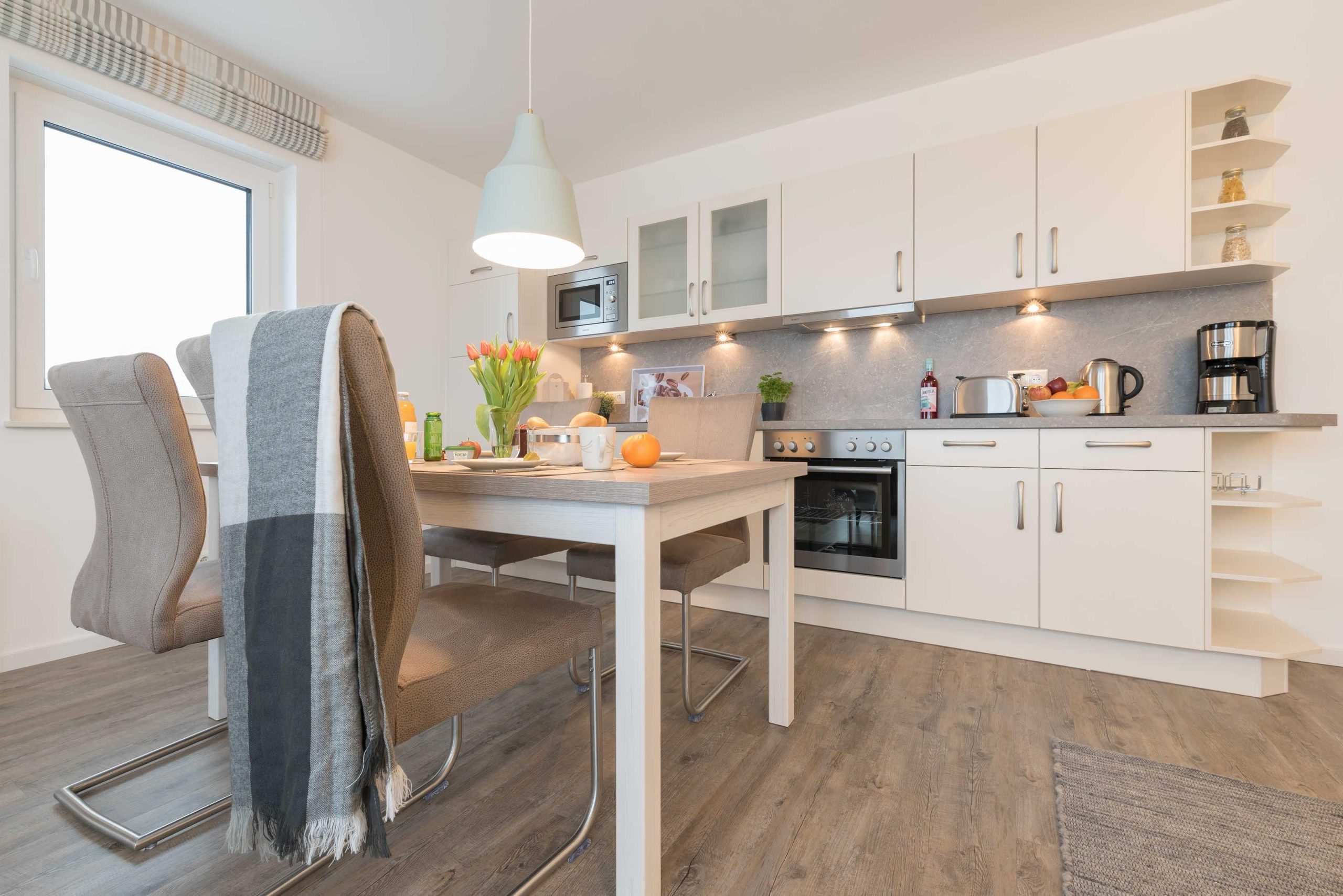zwei großzügige Schlafzimmer, ein Wohn-Esszimmer mit offener Einbauküche, ein
