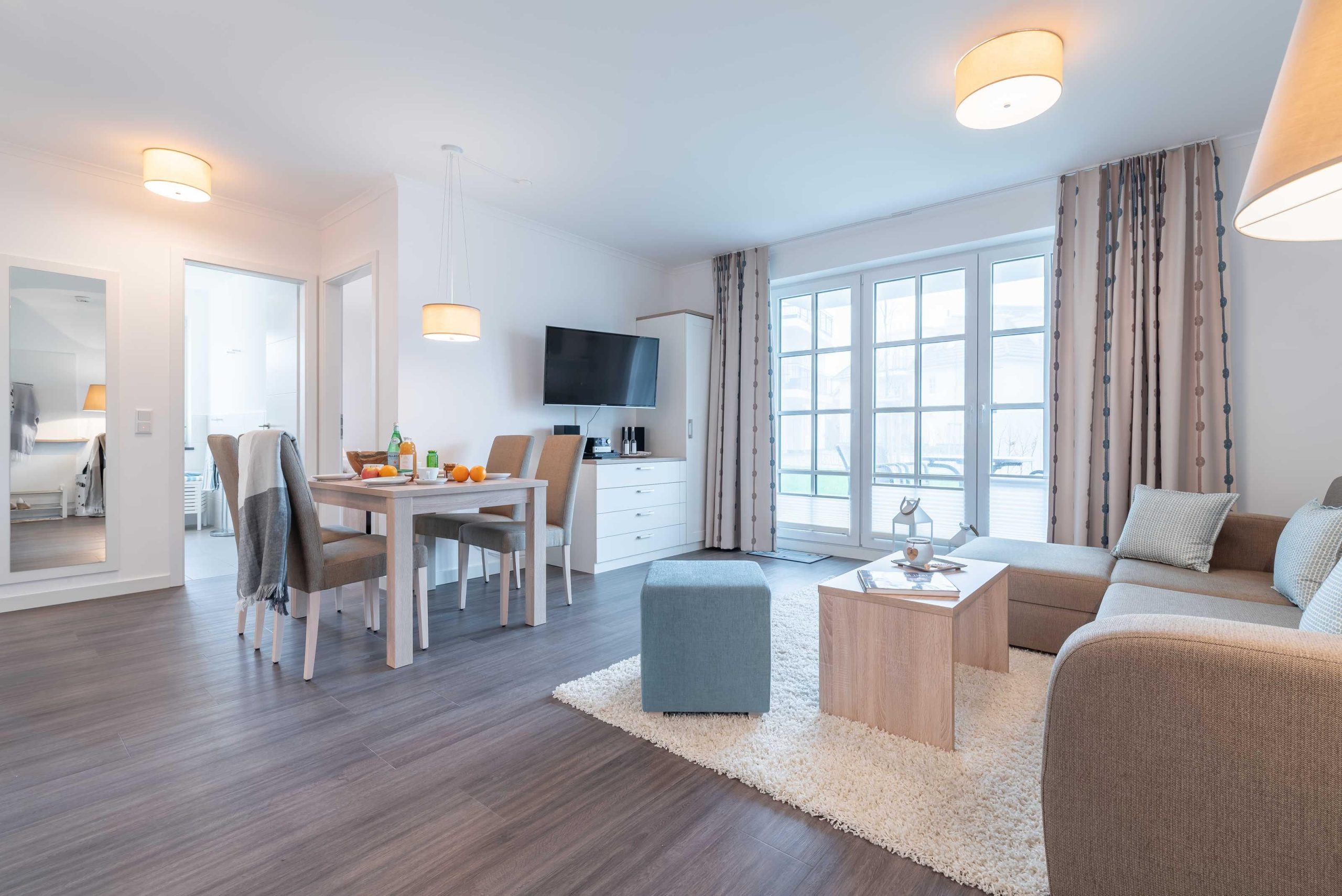 Die ca. 58 m² große Ferienwohnung Dünenrose WE 01 „La Luna“ in Börgerende bietet Platz für bis zu vier Personen und verfügt über zwei Schlafzimmer, eine offene, voll ausgestattete Küche, eine sonnige Terrasse mit Gartenmöbeln, WLAN sowie einen kostenlosen Privatparkplatz. Der Strand ist nur 300 Meter entfernt.