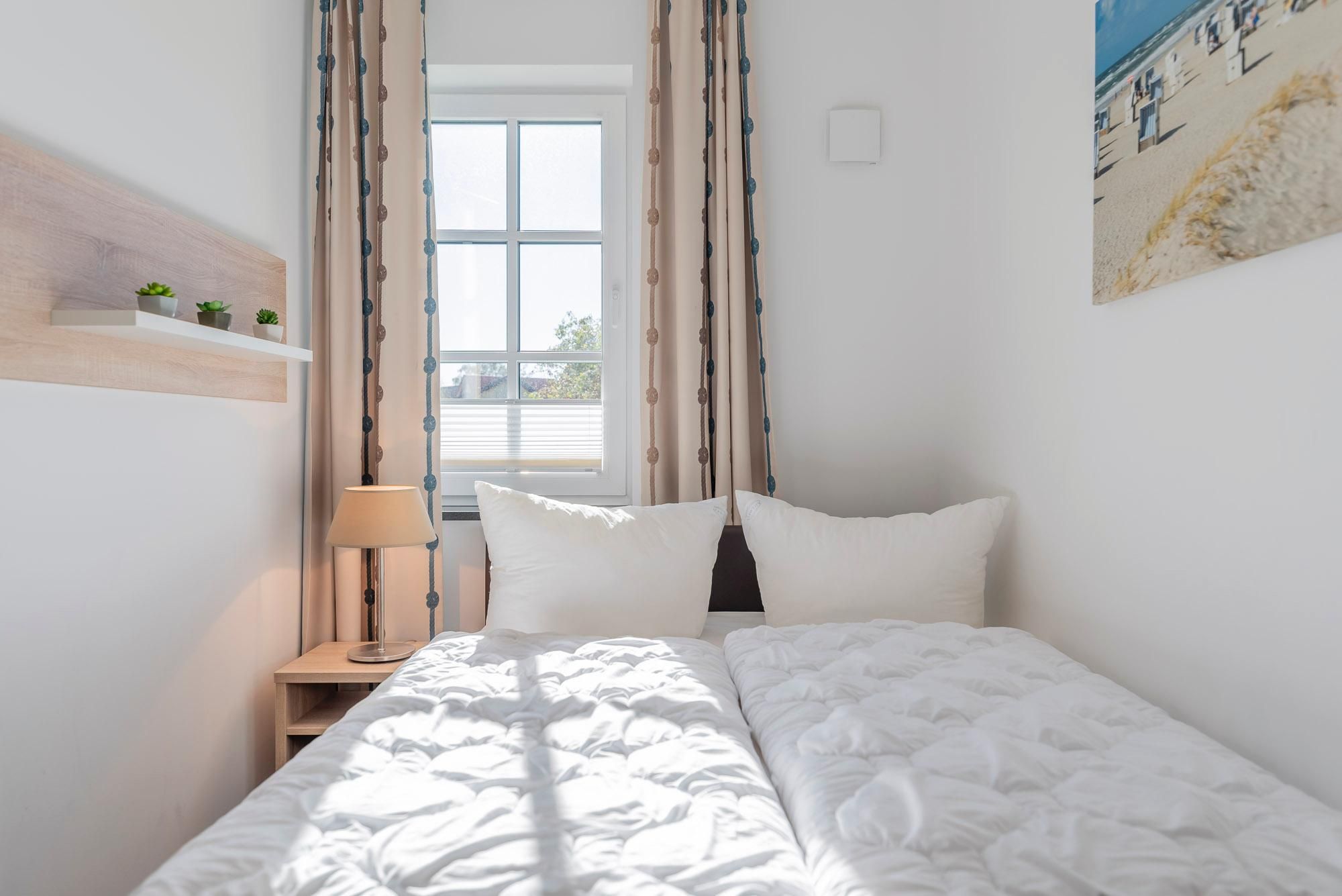 Die zwei Schlafzimmer sind mit bequemen Boxspringbetten und ausreichend Stauraum