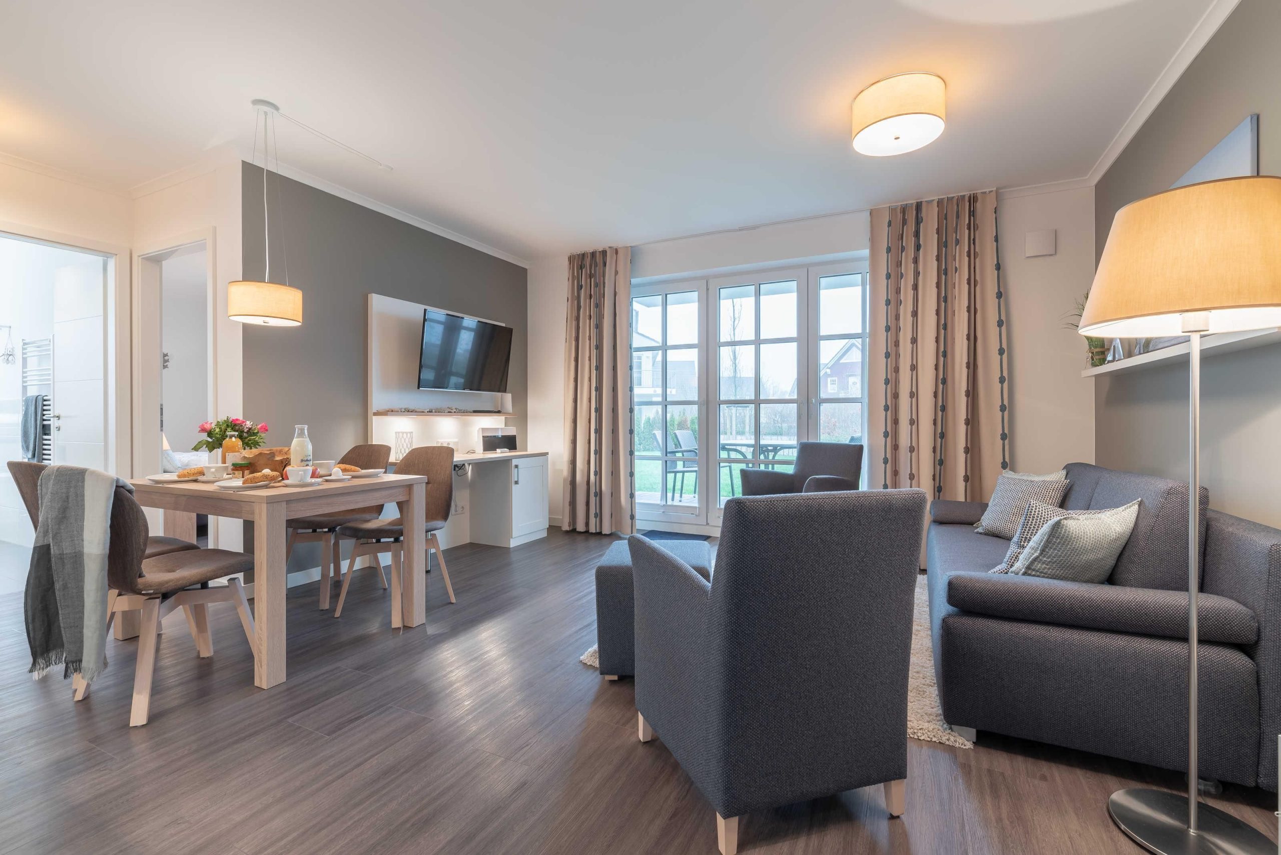 Das Haus Seegras WE 01 in Börgerende bietet auf ca. 58 m² Wohnfläche zwei Schlafzimmer, einen Wohnbereich mit offener Küche und modernen Annehmlichkeiten wie WLAN, Kabel-TV und Spülmaschine. Ein privater Garten mit Terrasse, kostenlosem Parkplatz sowie die Nähe zum Strand und zu Restaurants machen dieses Haus ideal für bis zu vier Gäste und maximal zwei Haustiere...