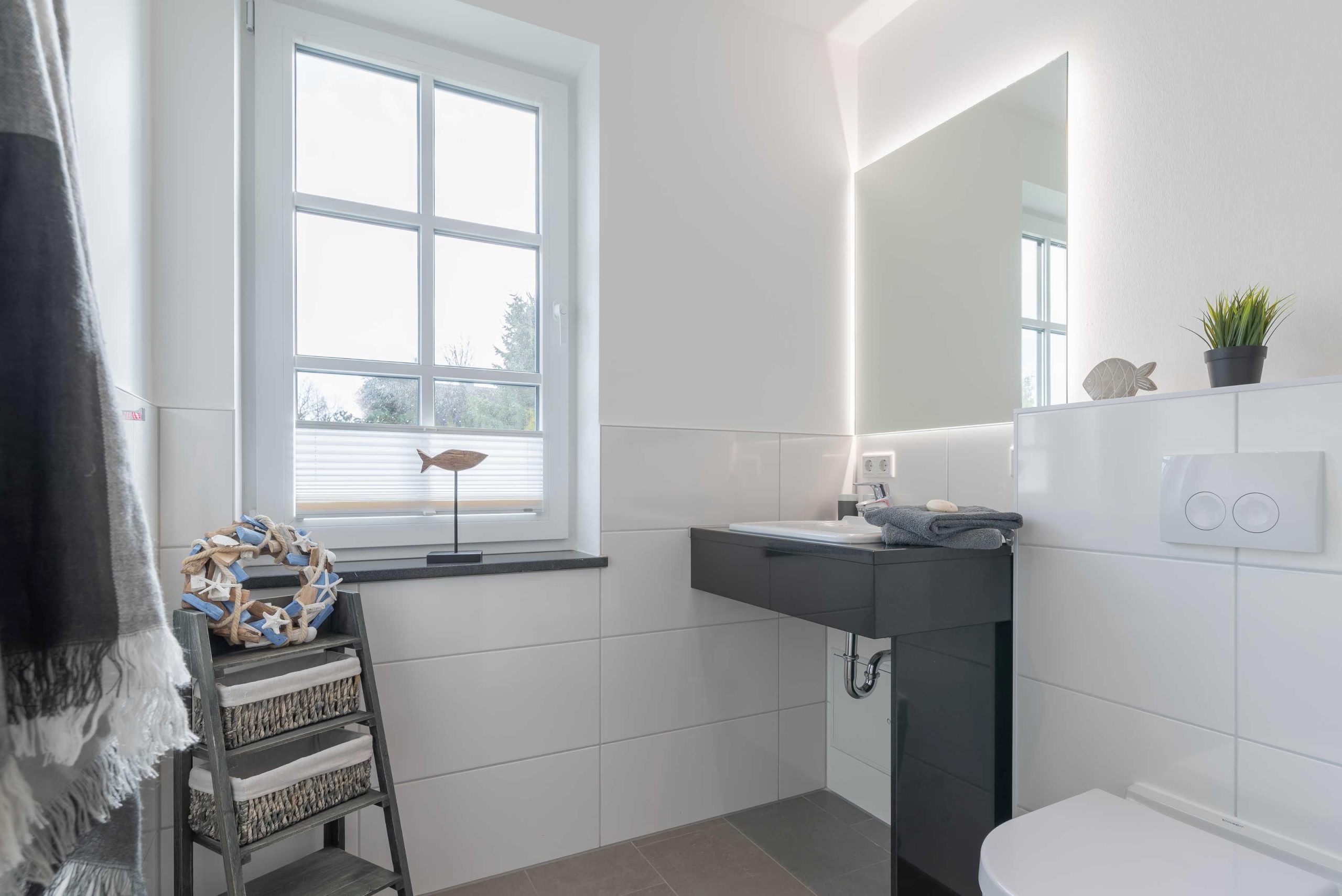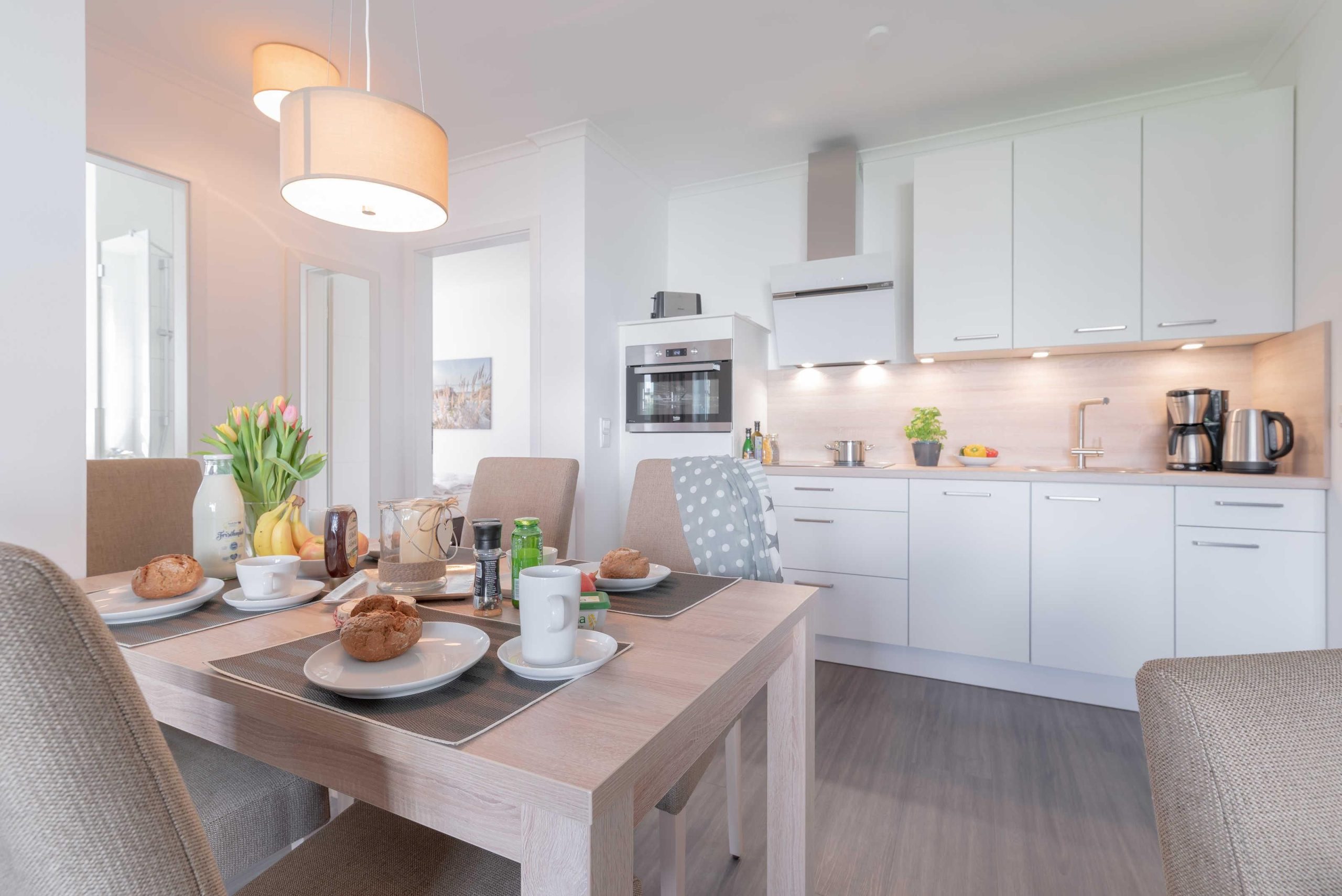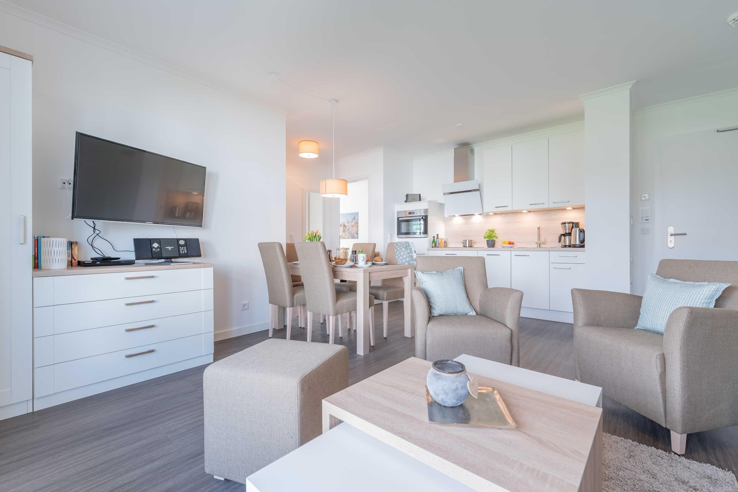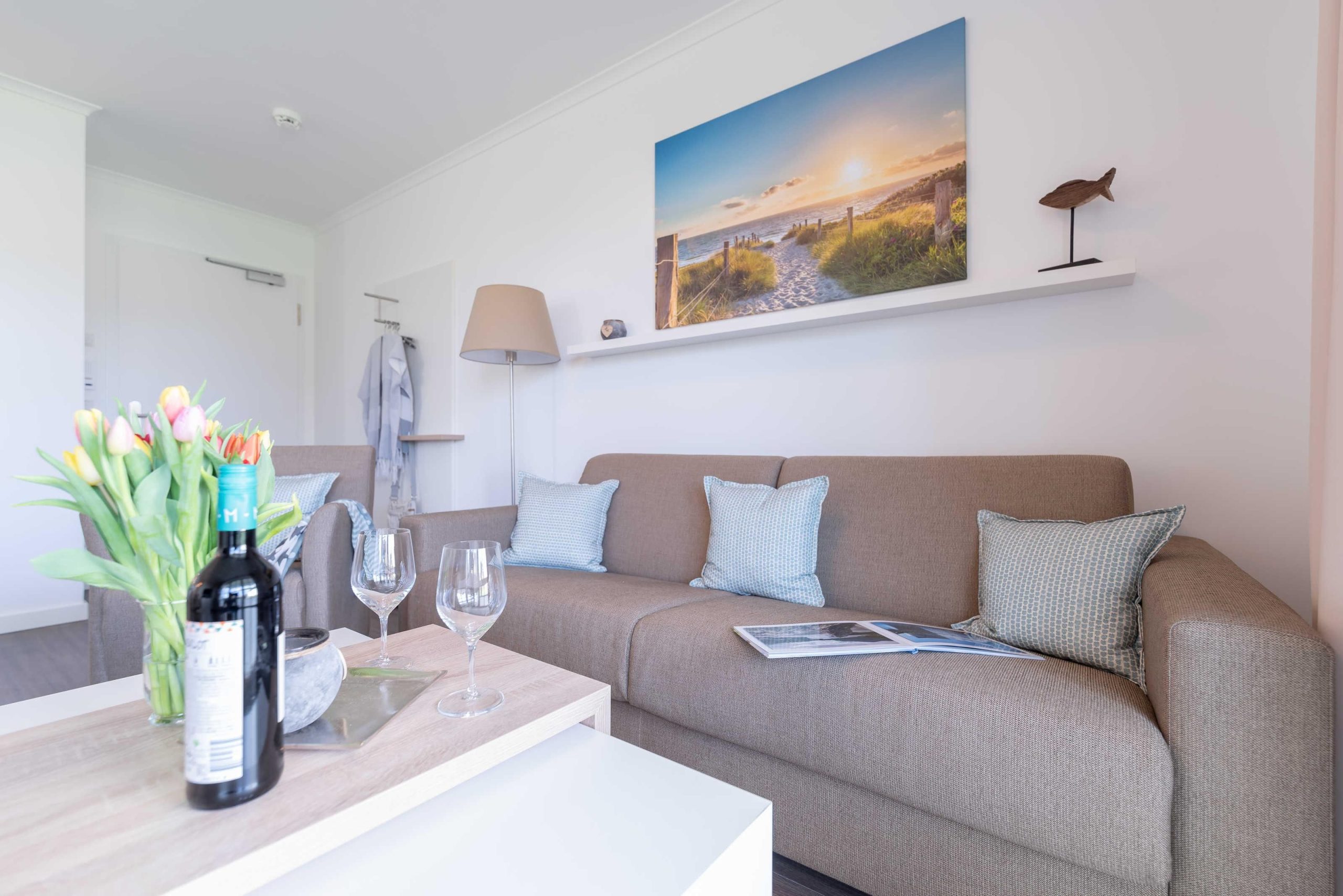modern und in einem zeitlos maritimen Stil ausgestattet. Im Wohnzimmer befinden