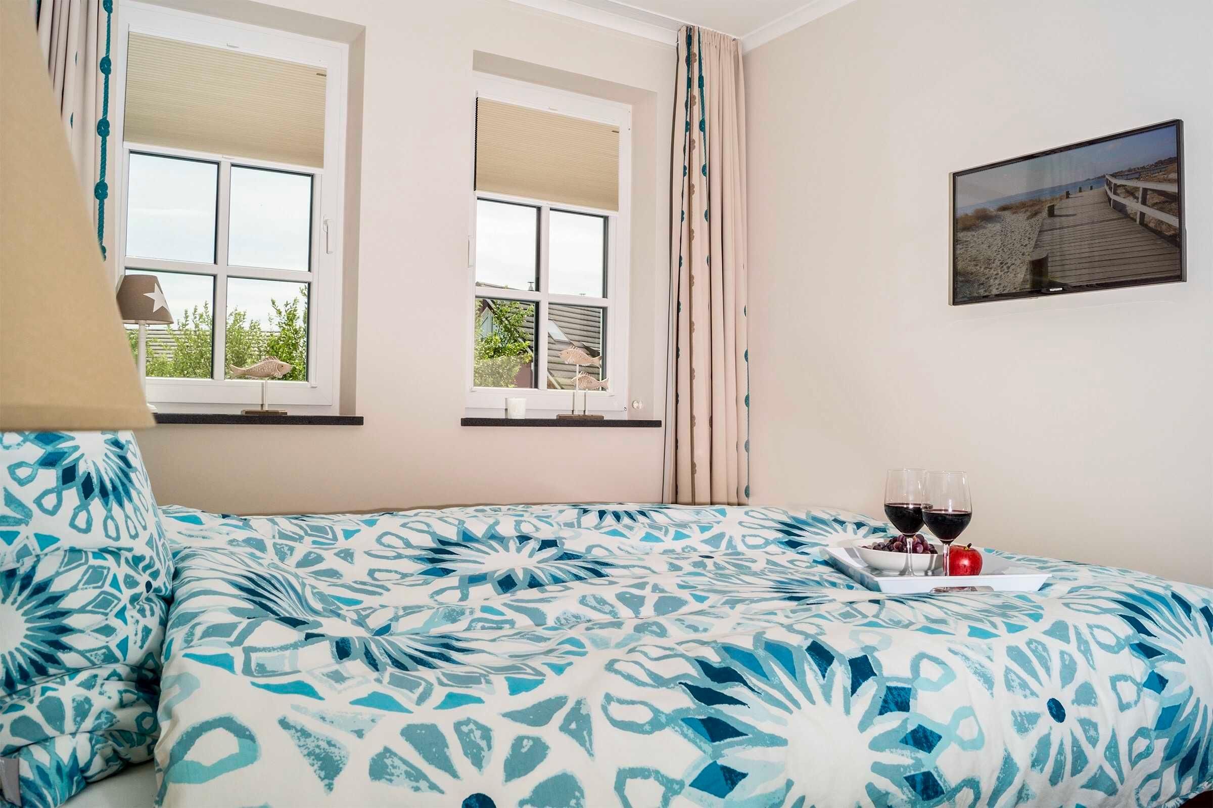 • Schlafzimmer 1: Boxspringbett (2× 90 × 200 cm), Flat-TV, Kleiderschrank, Verdunklung [&] Fliegengitter