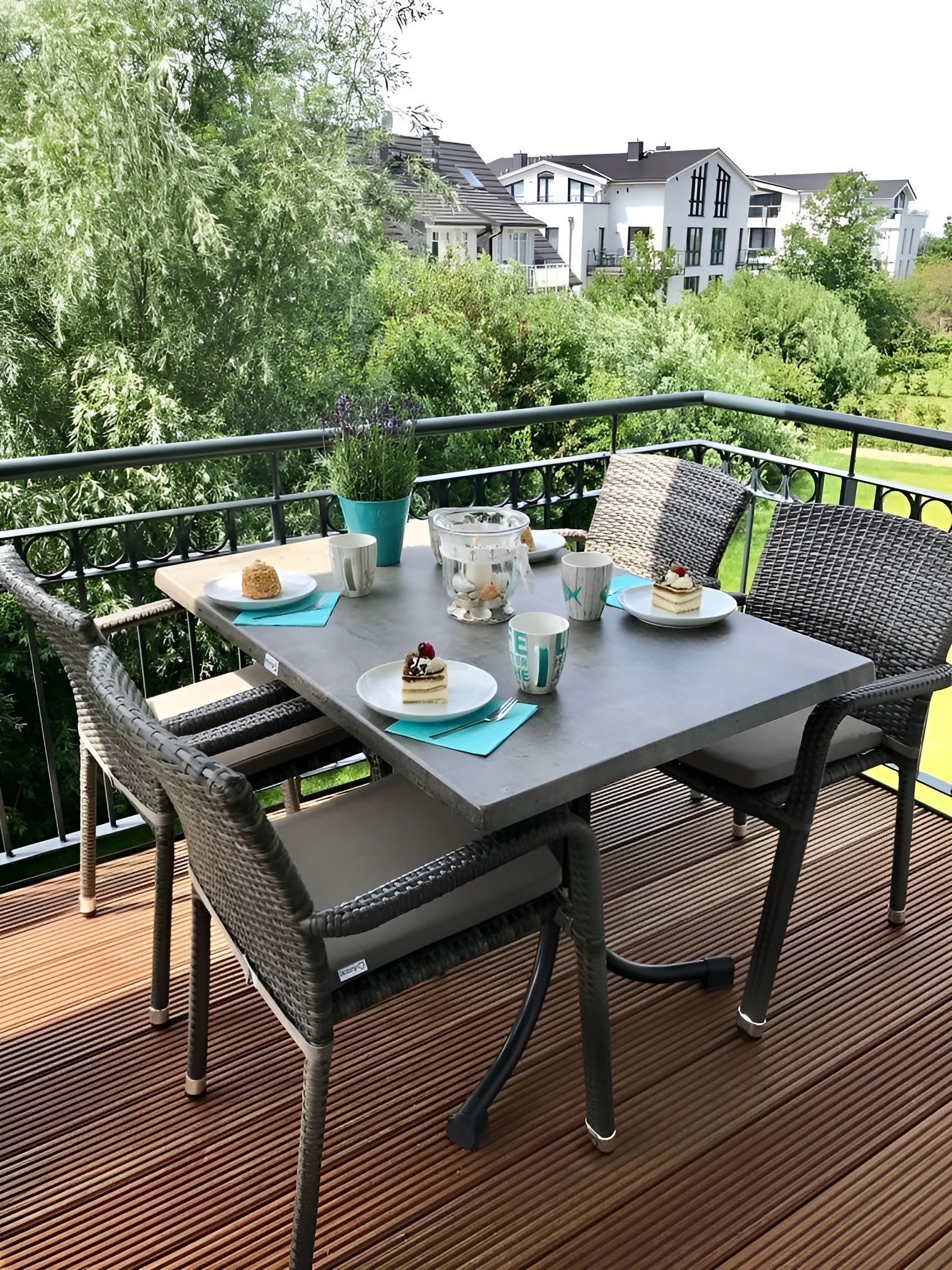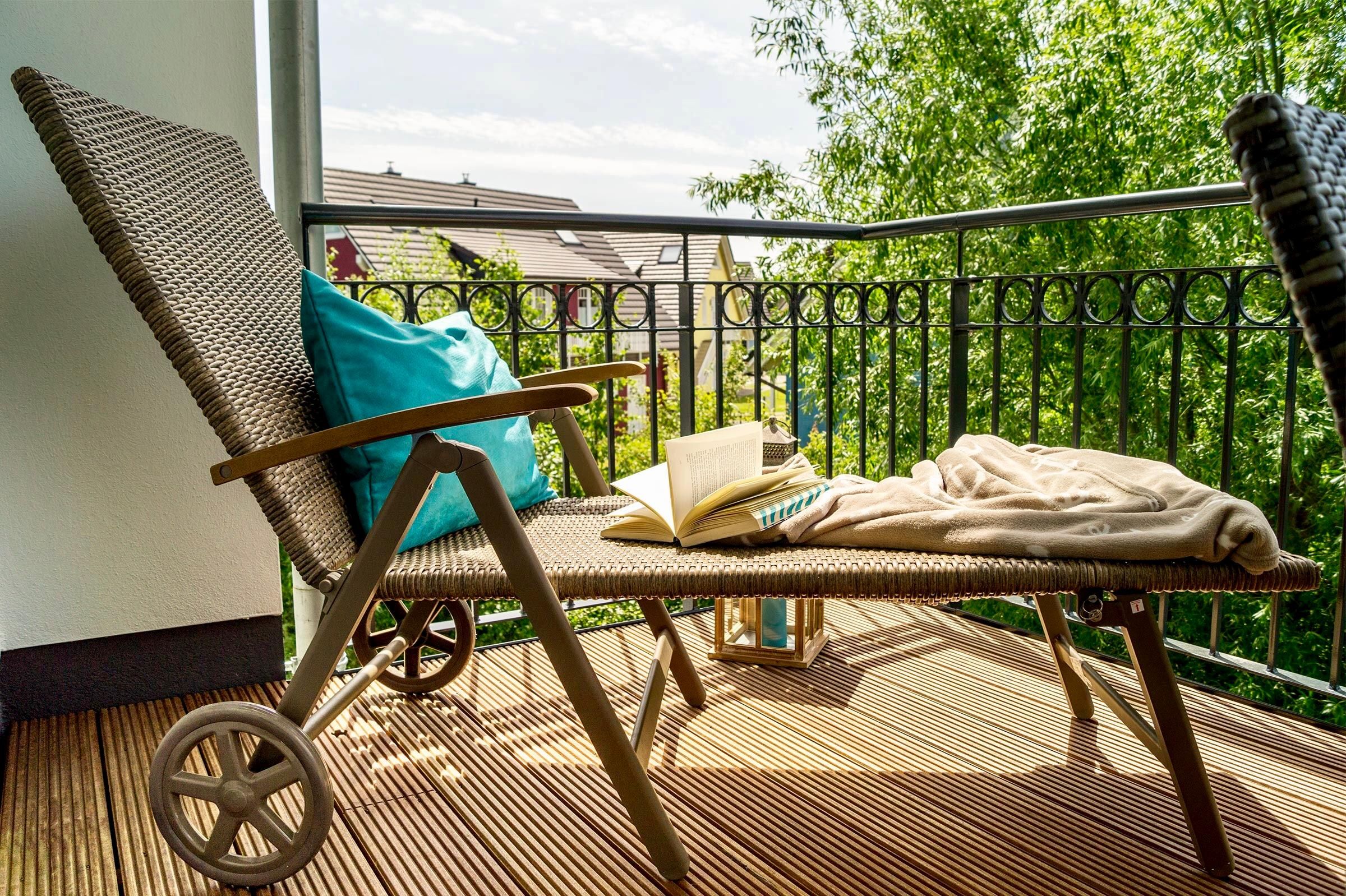 • Balkon mit Nachmittags- [&] Abendsonne, Blick ins Grüne [&] seitlichem Meerblick