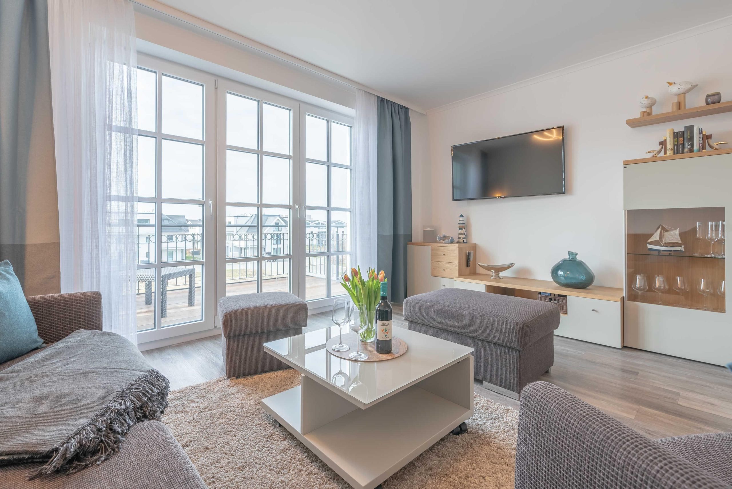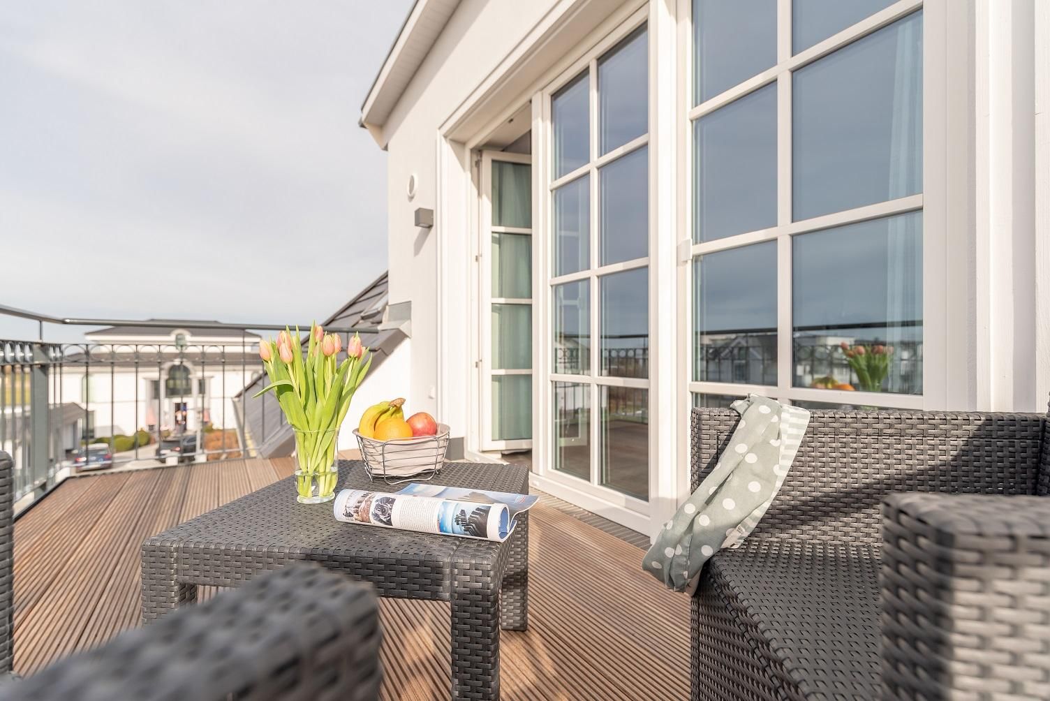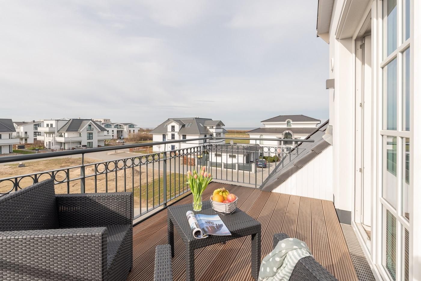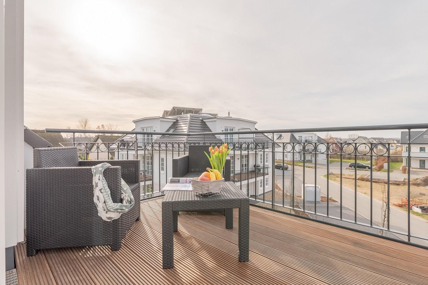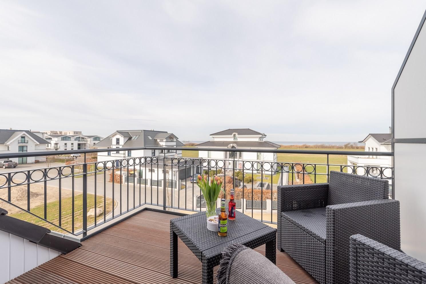 Die Ferienwohnung verfügt über einen großen Balkon mit direktem Ostseeblick.