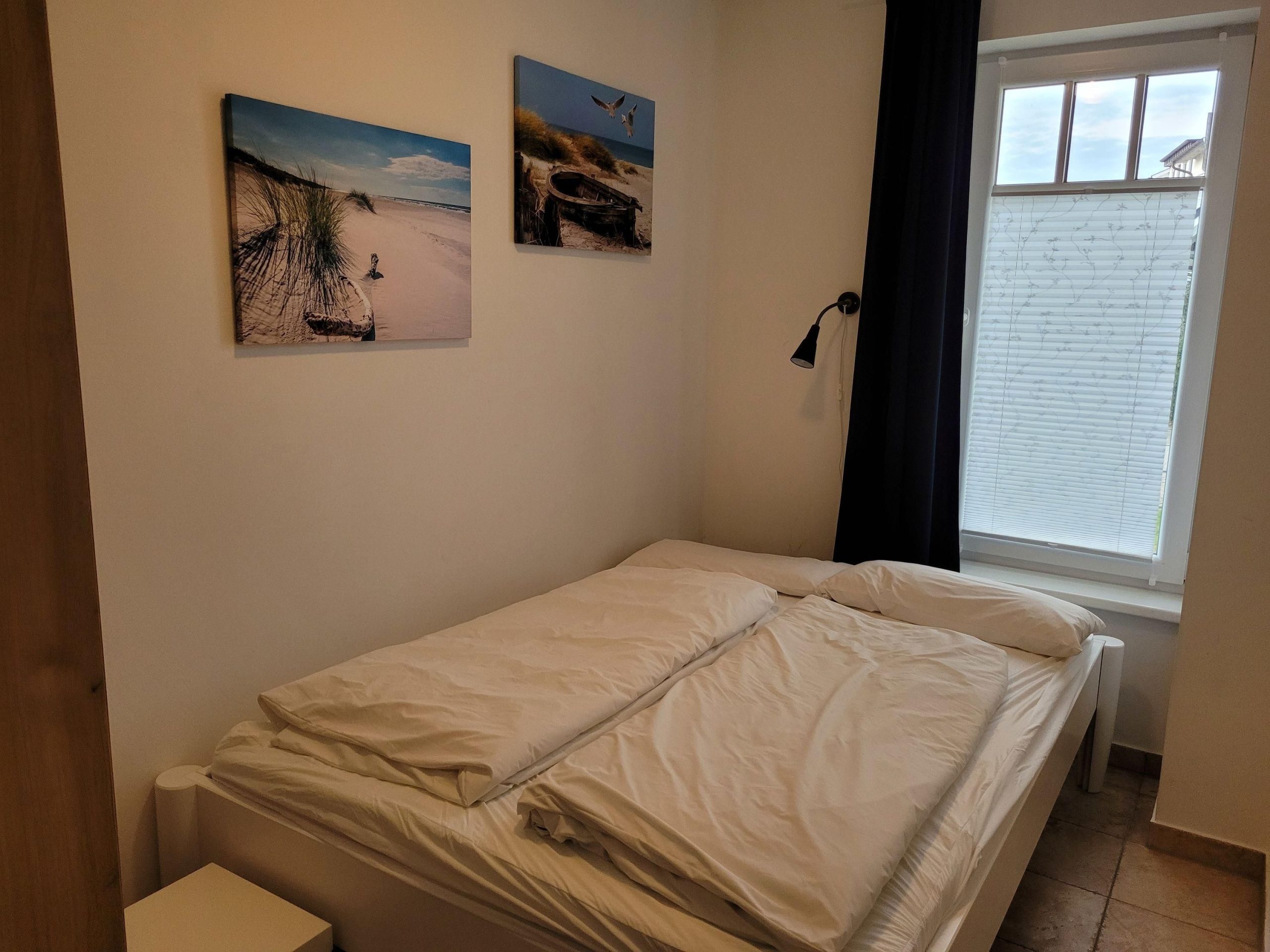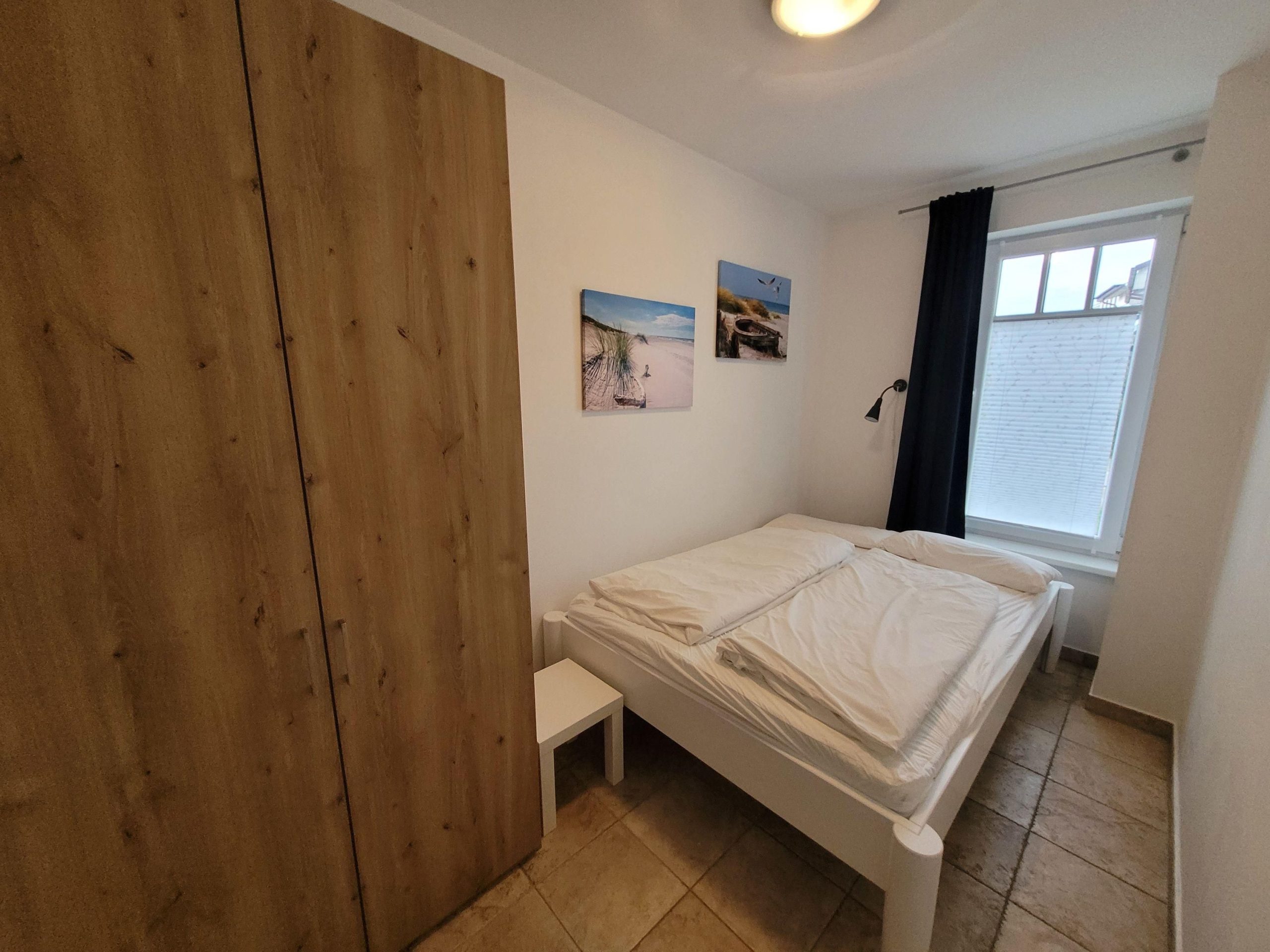 Das kleinere Schlafzimmer besitzt ein Doppelbett mit den Maßen 140 x 200 cm und