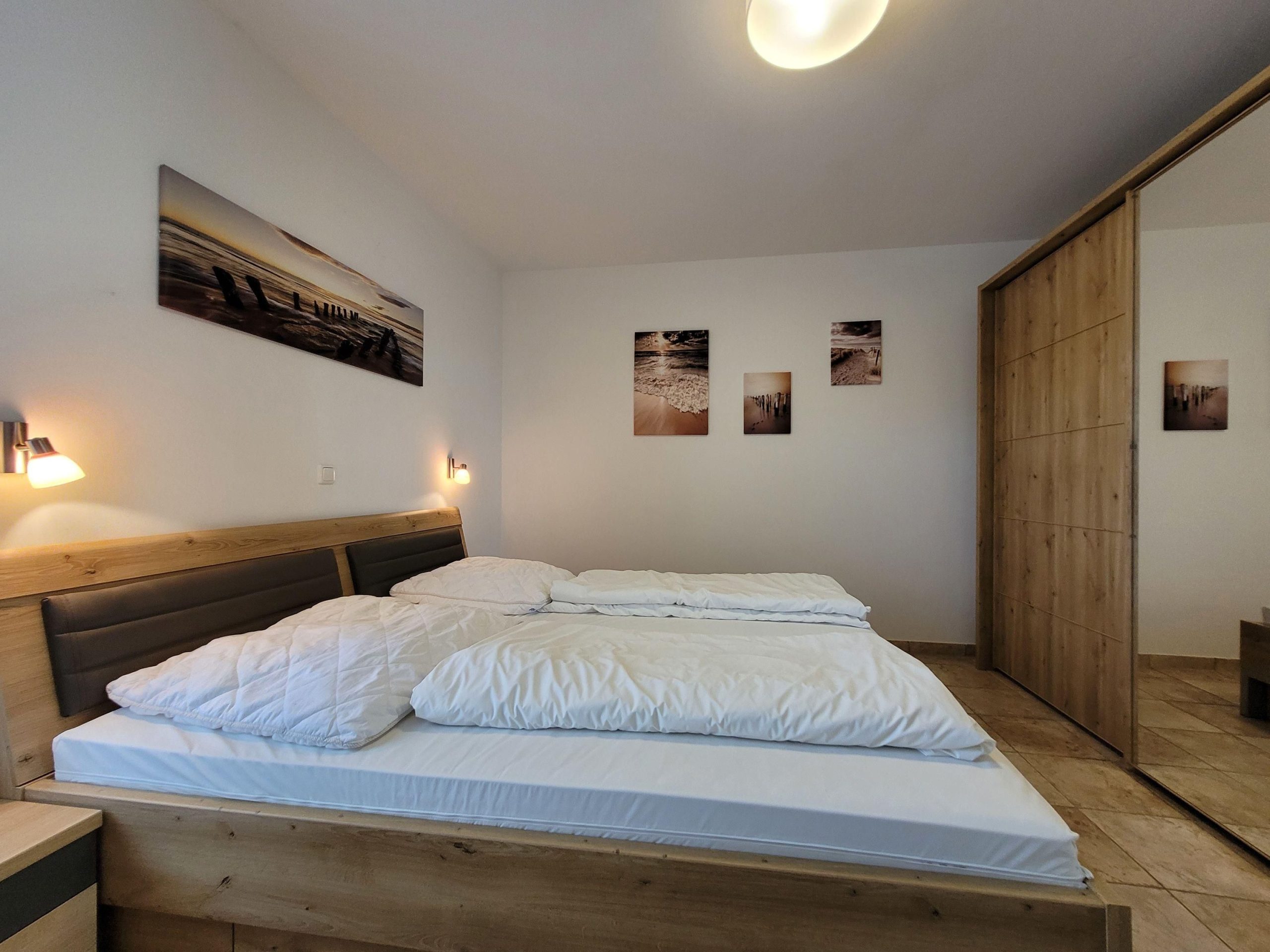 starten. Das größere Schlafzimmer empfängt Sie mit einem Doppelbett (180 x 200