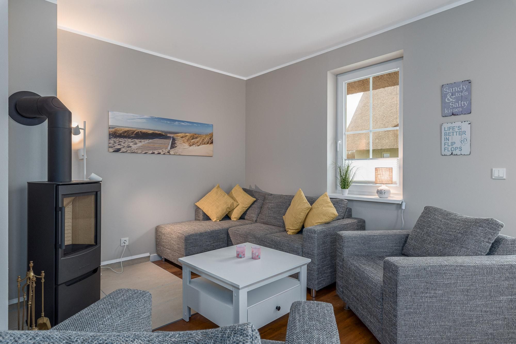 Die reetgedeckte Doppelhaushälfte mit einer Größe von 83m², liegt ruhig am