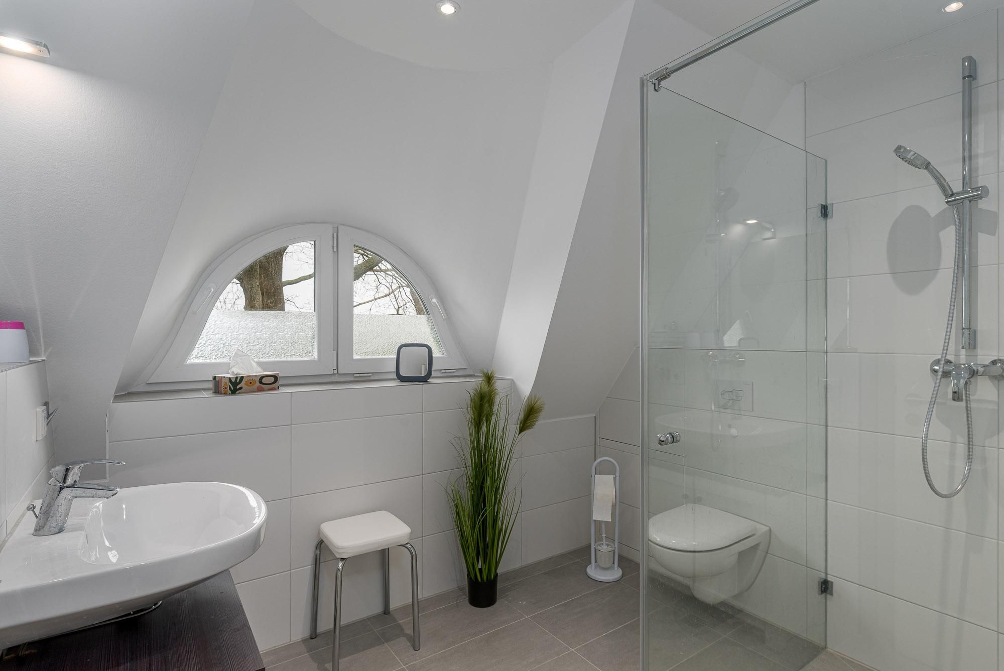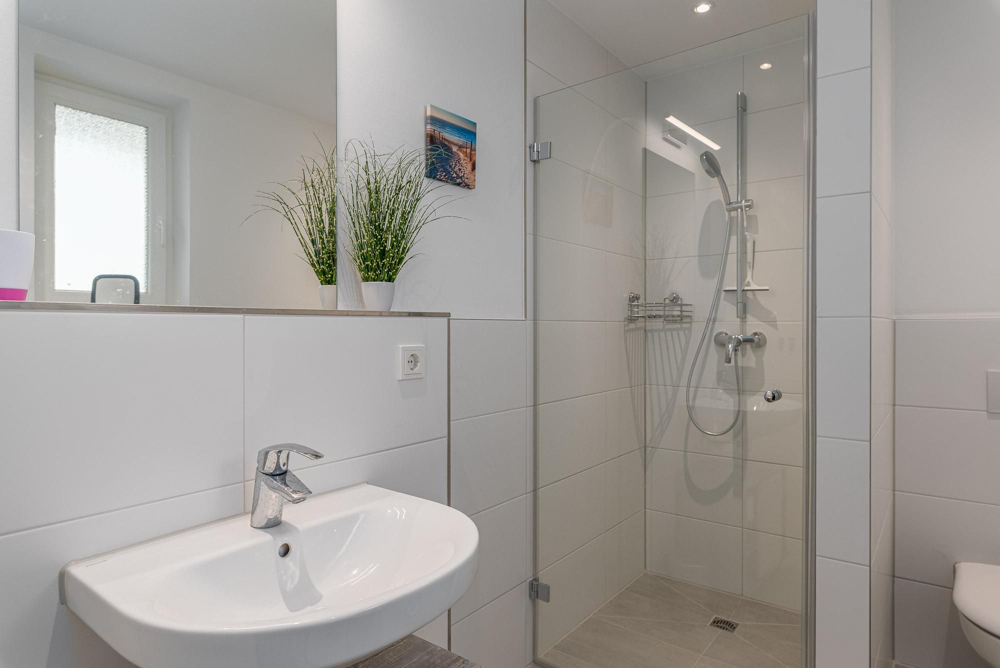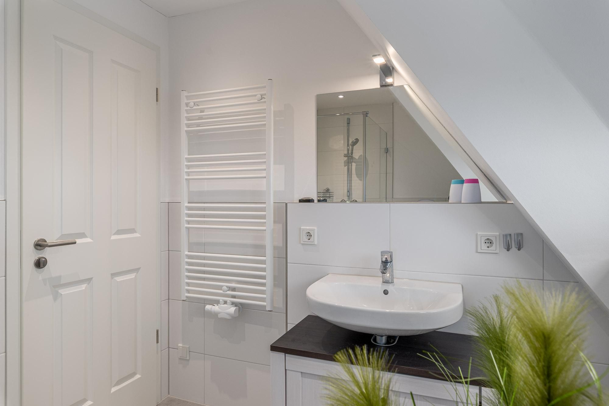 2 Duschbäder mit ebenerdiger Dusche, Handtuchtrockner, Fön