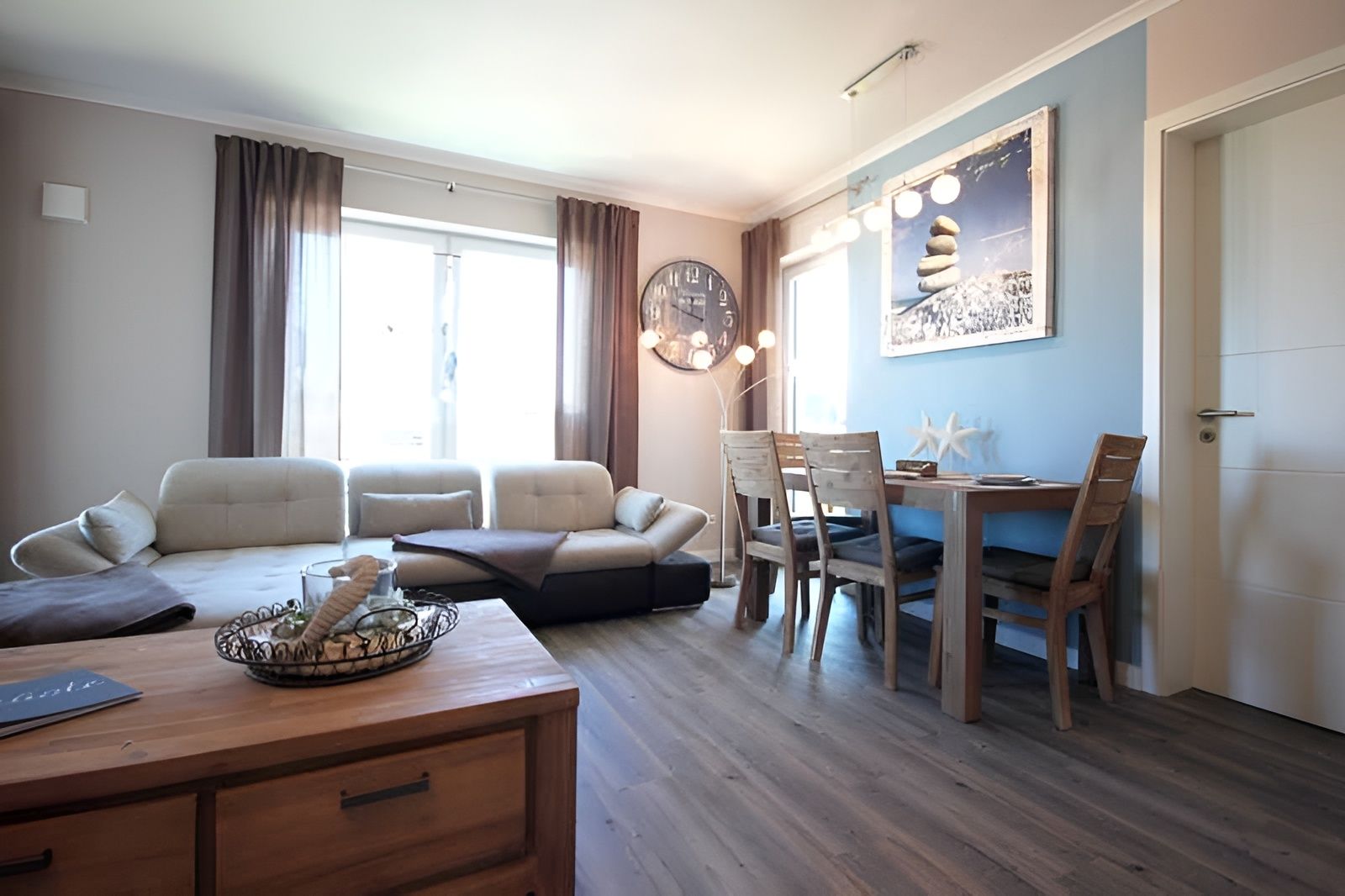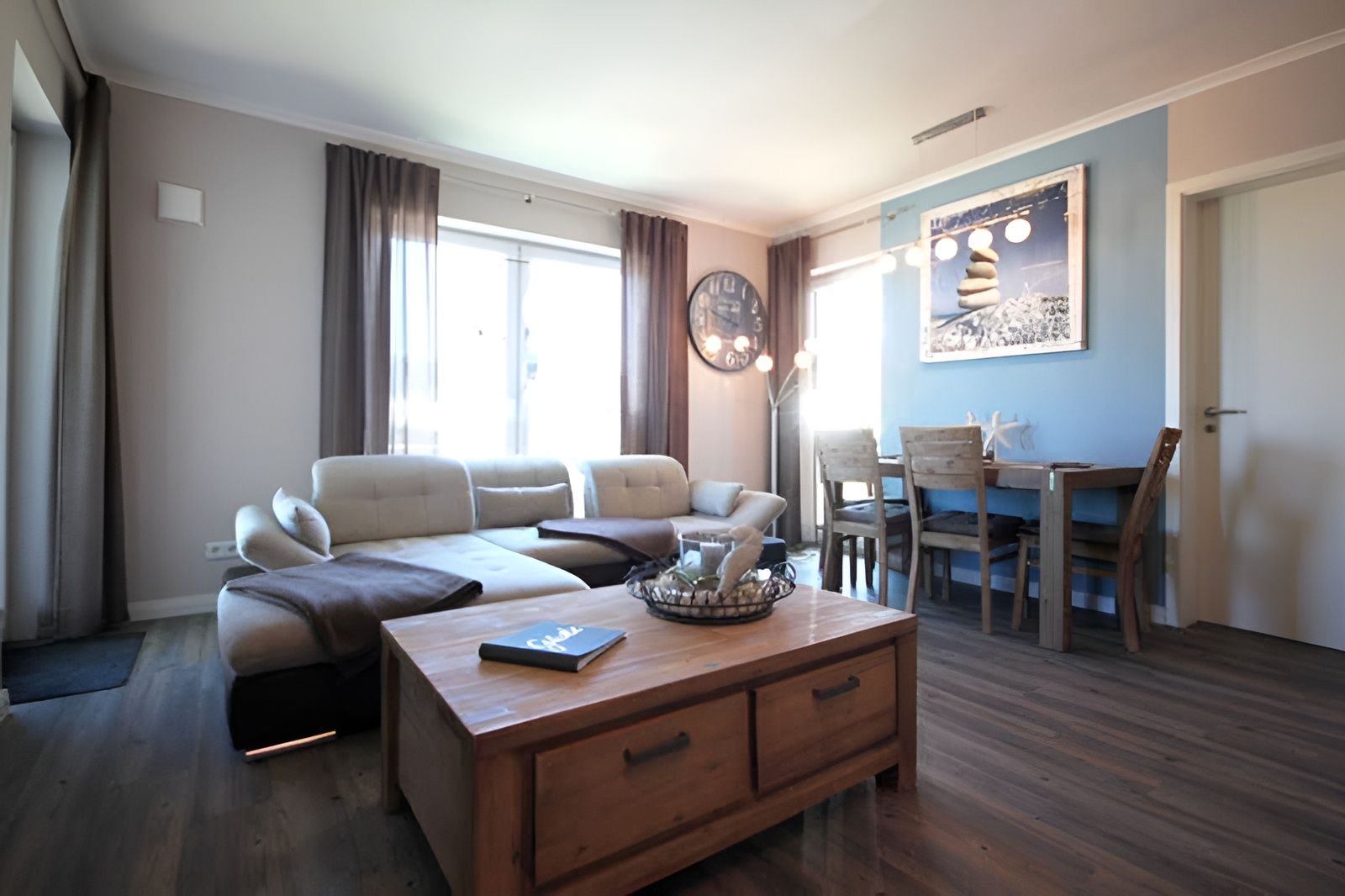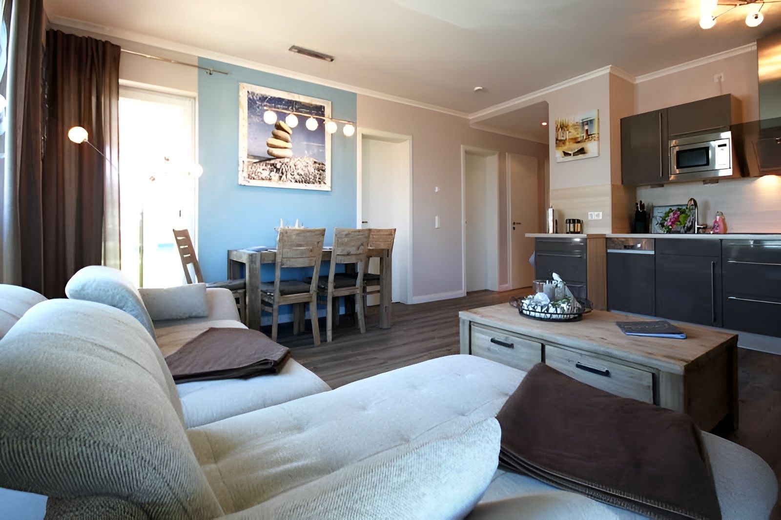 Die Wohnung befindet sich im Erdgeschoss der Residenz am Meer und verfügt über