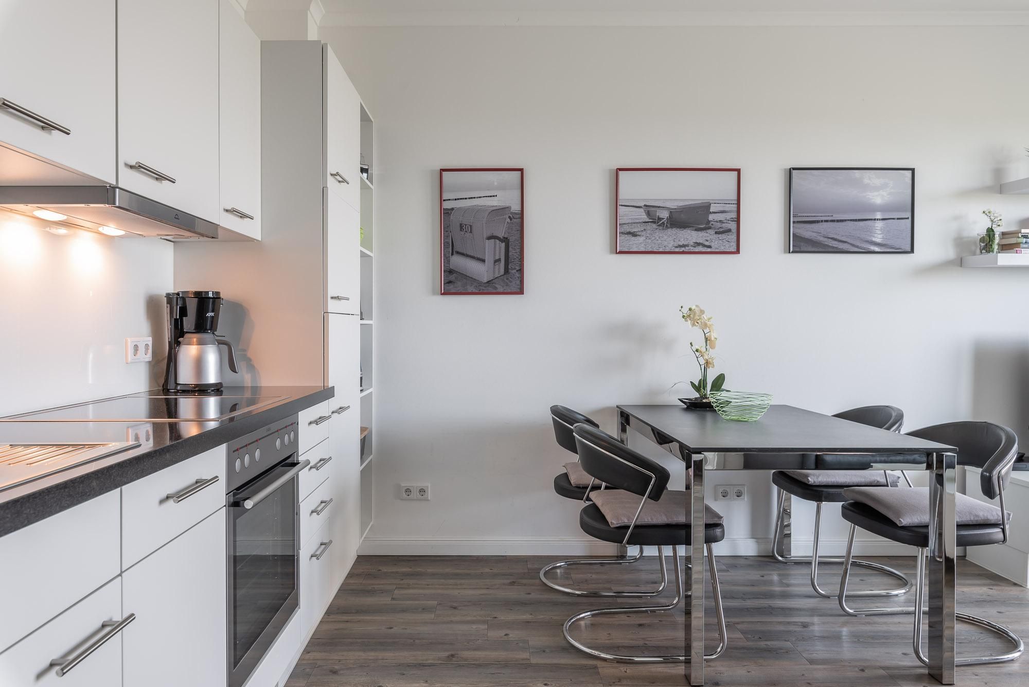 Die moderne Ferienwohnung Residenz Am Meer WE 05 in Börgerende bietet auf ca. 45 m² Platz für bis zu vier Personen. Zur Ausstattung zählen ein Schlafzimmer, ein offener Wohn- und Küchenbereich, Balkon mit Meerblick, kostenloser Privatparkplatz, WLAN sowie gemeinschaftlich nutzbare Waschmaschine und Trockner. Die Ostsee und Einkaufsmöglichkeiten sind fußläufig...