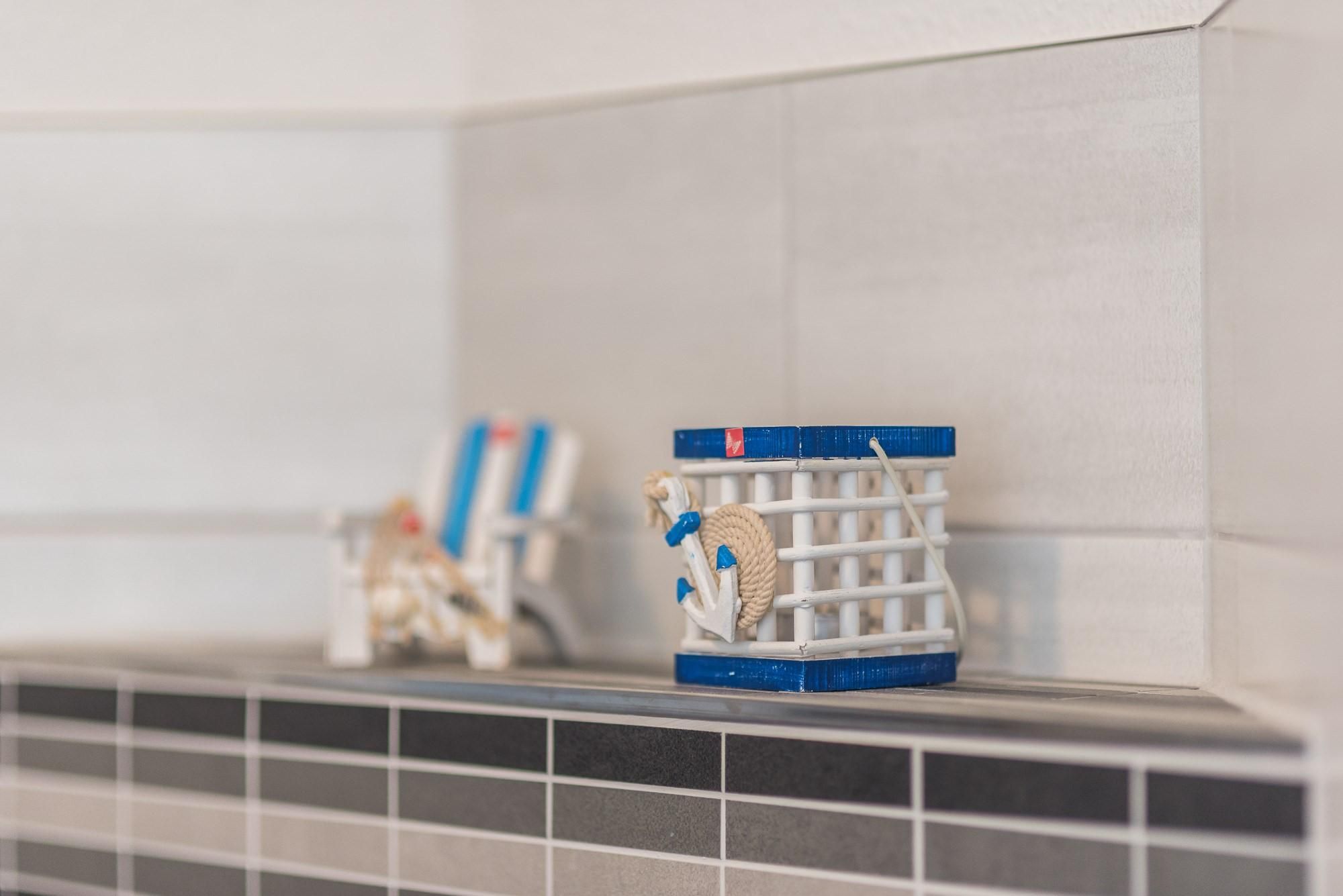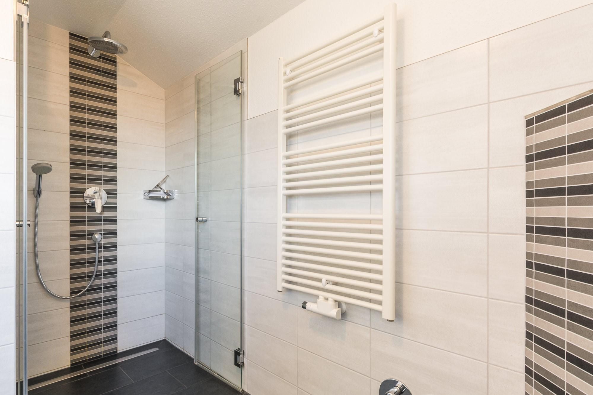 Kühlschrank. Das Badezimmer überzeugt mit einer ebenerdigen geräumigen Dusche.