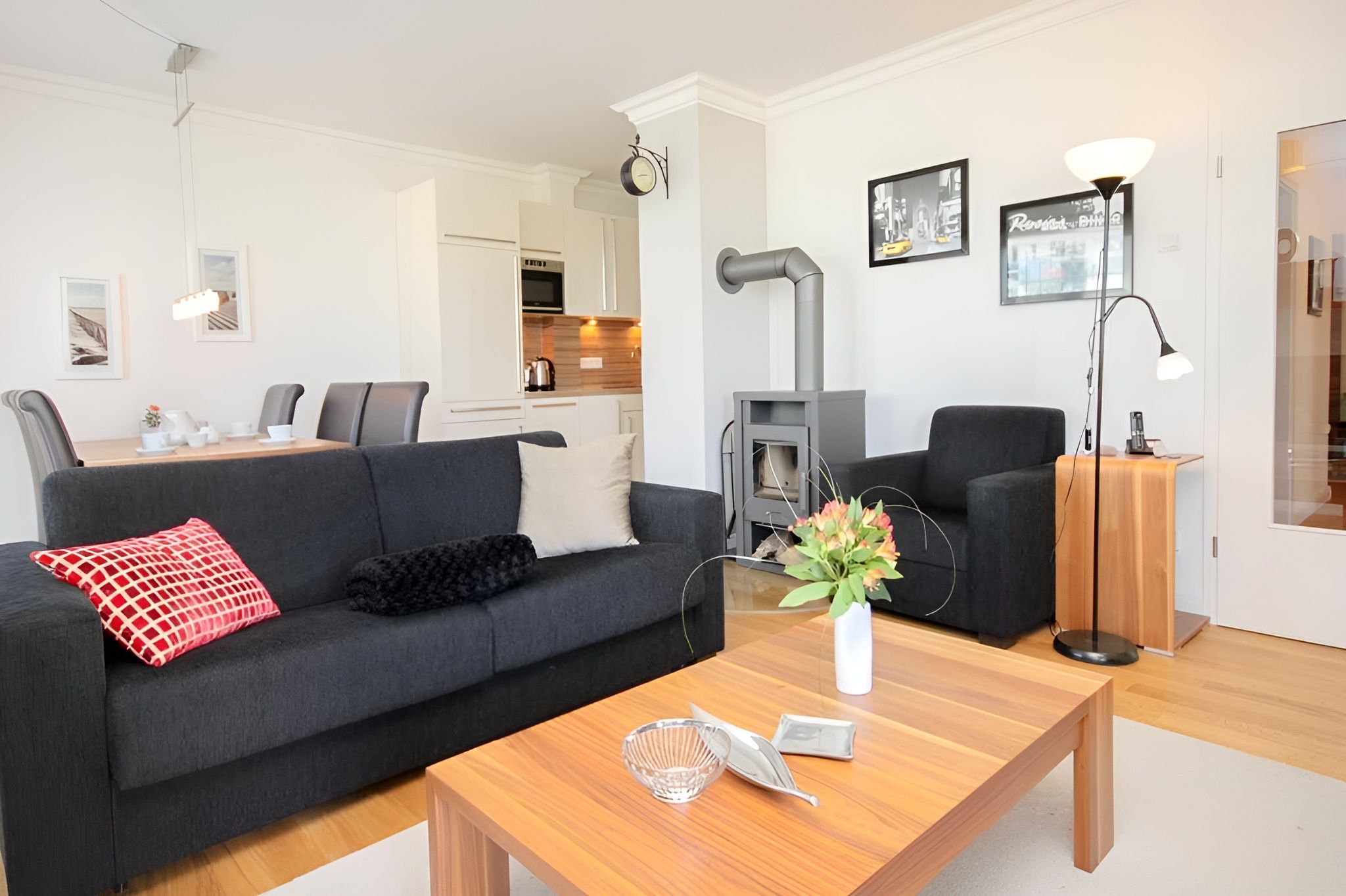 Haus Seeresidenz WE 01 in Börgerende bietet auf ca. 84 m² Komfort für bis zu 6 Personen. Zwei Schlafzimmer, ein modernes Bad sowie ein zusätzliches Gäste-WC stehen zur Verfügung. Zur hochwertigen Ausstattung zählen eine offene Küche, Terrasse mit Gartenblick, kostenloser Privatparkplatz, WLAN, und ein Kamin.