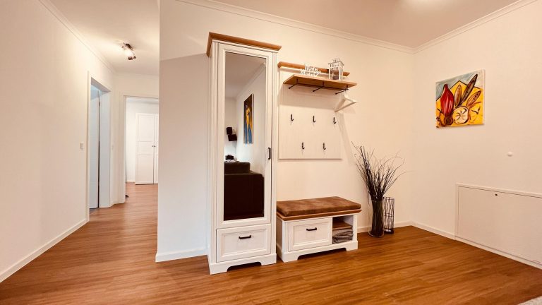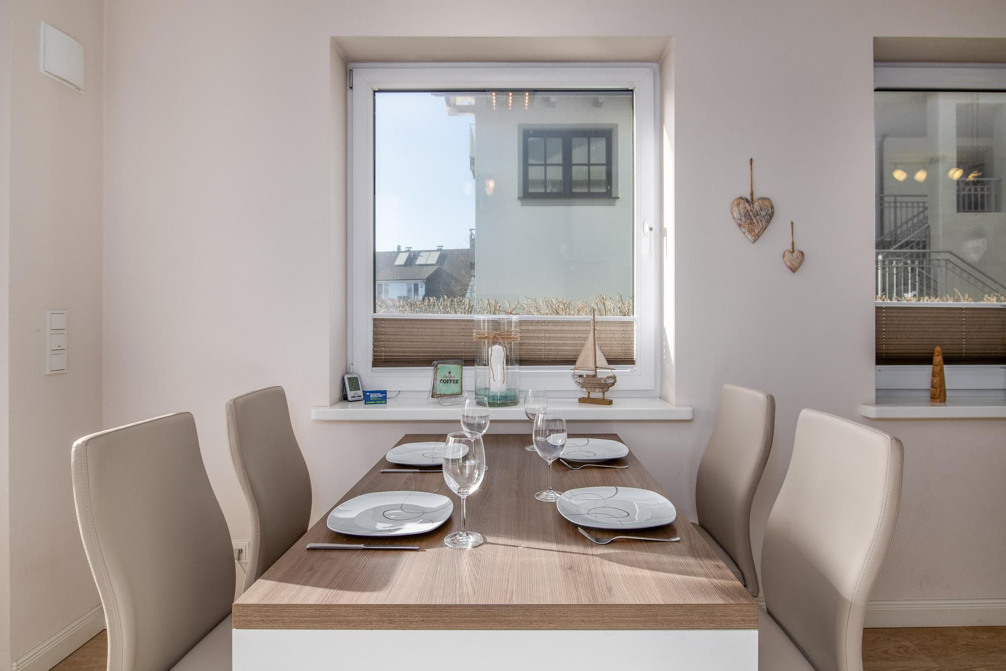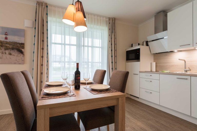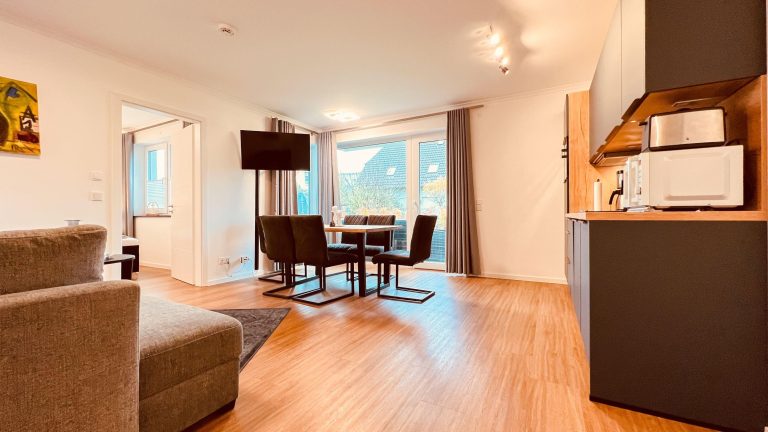 Haus Seeresidenz Seeresidenz WE 03 bietet auf ca. 59 m² eine moderne, offen gestaltete Unterkunft im Erdgeschoss mit eigener Terrasse und Gartenblick. Zur Ausstattung gehören WLAN, Kabel-TV, eine voll ausgestattete Küche mit Spülmaschine und Ceranherd, ein Kamin sowie ein kostenloser Privatparkplatz. Der Strand und das Stadtzentrum sind fußläufig erreichbar.
