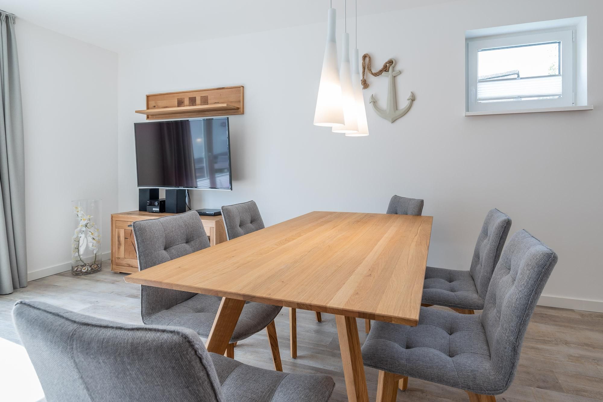 Das Strandhaus WE 02 bietet auf ca. 85 m² Platz für bis zu 6 Personen in drei Schlafzimmern. Genießen Sie eine moderne, offen gestaltete Küche, einen lichtdurchfluteten Wohnbereich, eine eigene Terrasse mit Gartenblick sowie kostenfreies WLAN und einen Privatparkplatz. Der Strand ist nur 450 Meter entfernt, Restaurants und Einkaufsmöglichkeiten sind bequem erreichbar.