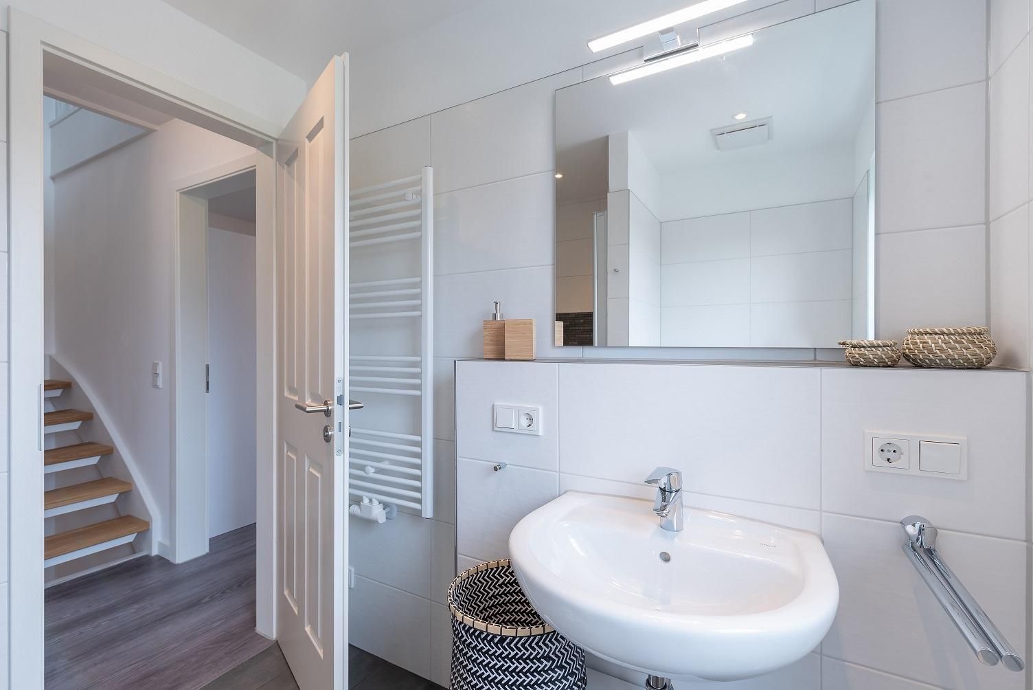 Im ersten Obergeschoss befindet sich ein weiteres großes Tageslichtbad mit