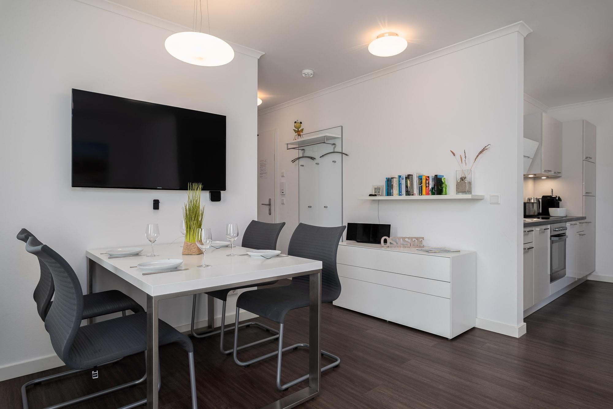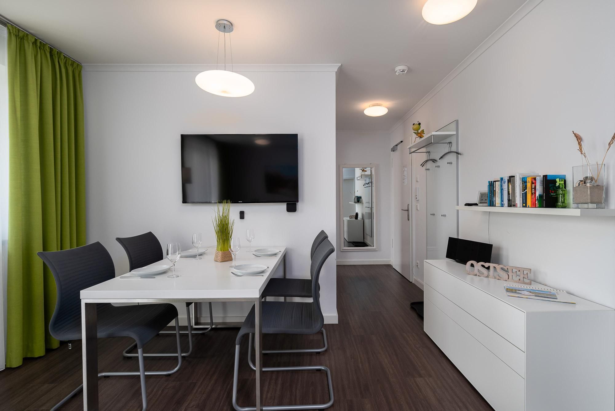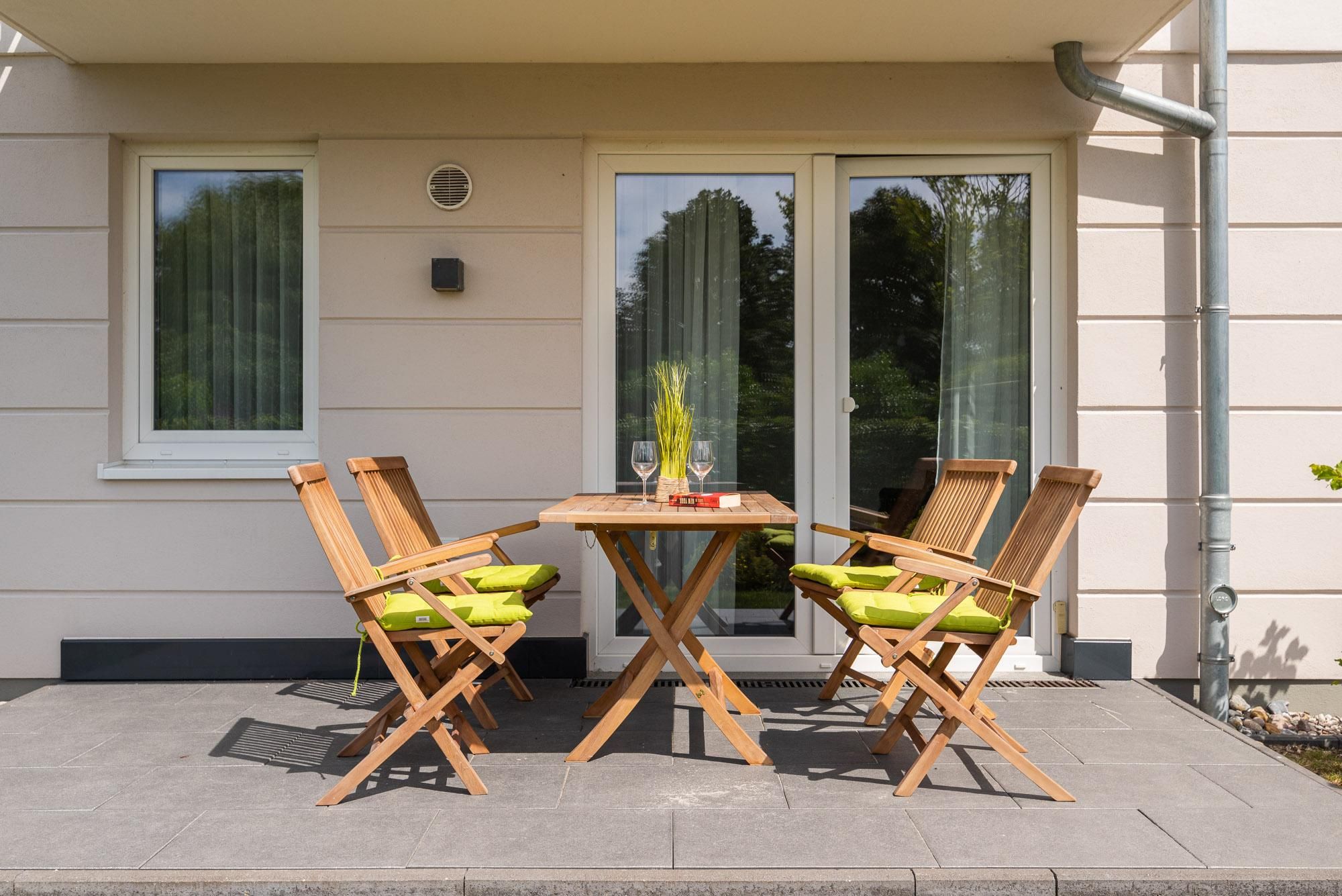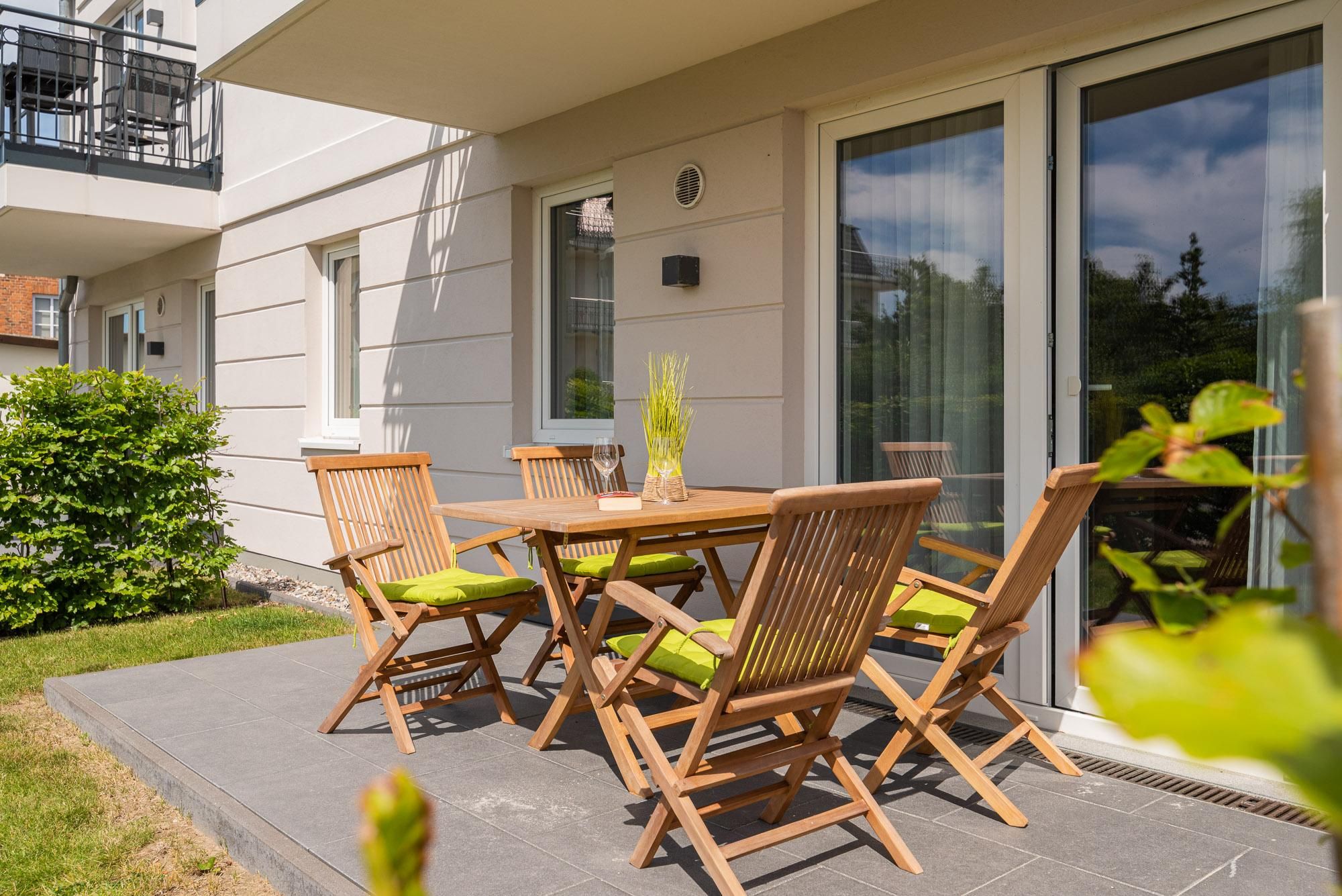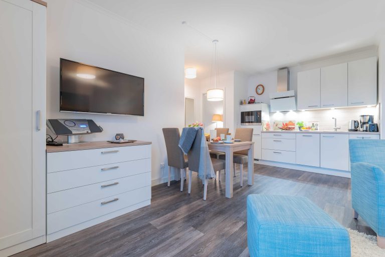 Die moderne Wohnung Villa Alizé WE 02 „Schilfgras“ im Erdgeschoss bietet ca. 56 m² Wohnfläche mit zwei Schlafzimmern, offener Küche und kostenlosem WLAN. Entspannen Sie auf der Terrasse mit Gartenblick oder nutzen Sie die fußläufige Nähe zum Strand. Für Komfort sorgen ein Privatparkplatz und familiengerechte Einrichtung.