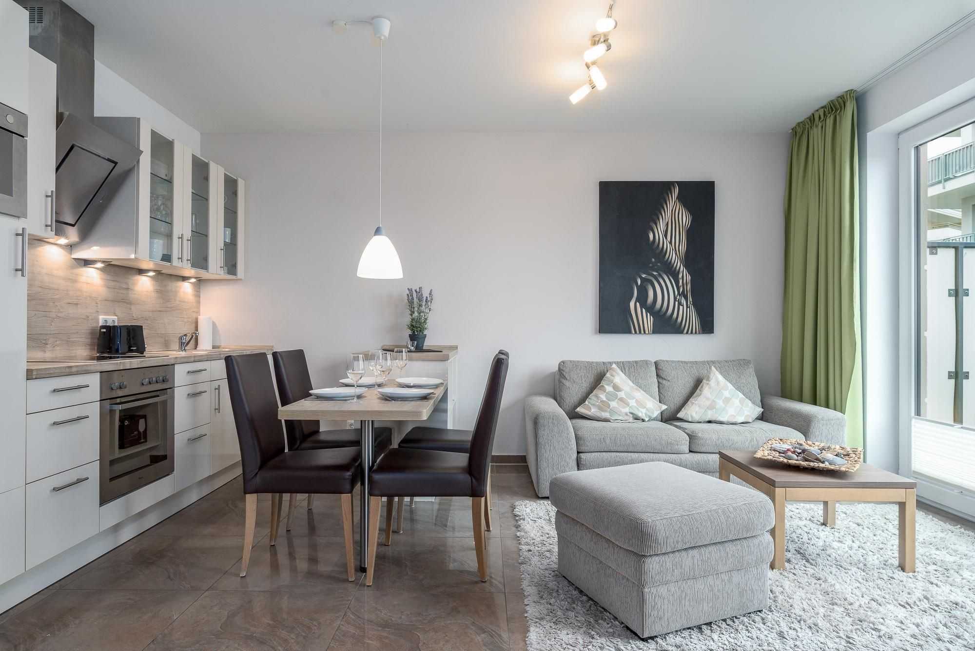 Die Villa Bernstein WE 08 in Börgerende bietet auf ca. 57 m² eine komfortable Unterkunft für bis zu vier Personen. Sie verfügt über eine offene Küche, Terrasse mit Gartenmöbeln, kostenloses WLAN, einen Privatparkplatz sowie moderne Ausstattung wie Spülmaschine, Waschmaschine, Trockner und Kabel-TV. Haustiere sind willkommen (10€/Nacht pro Haustier, sowie einmalig...