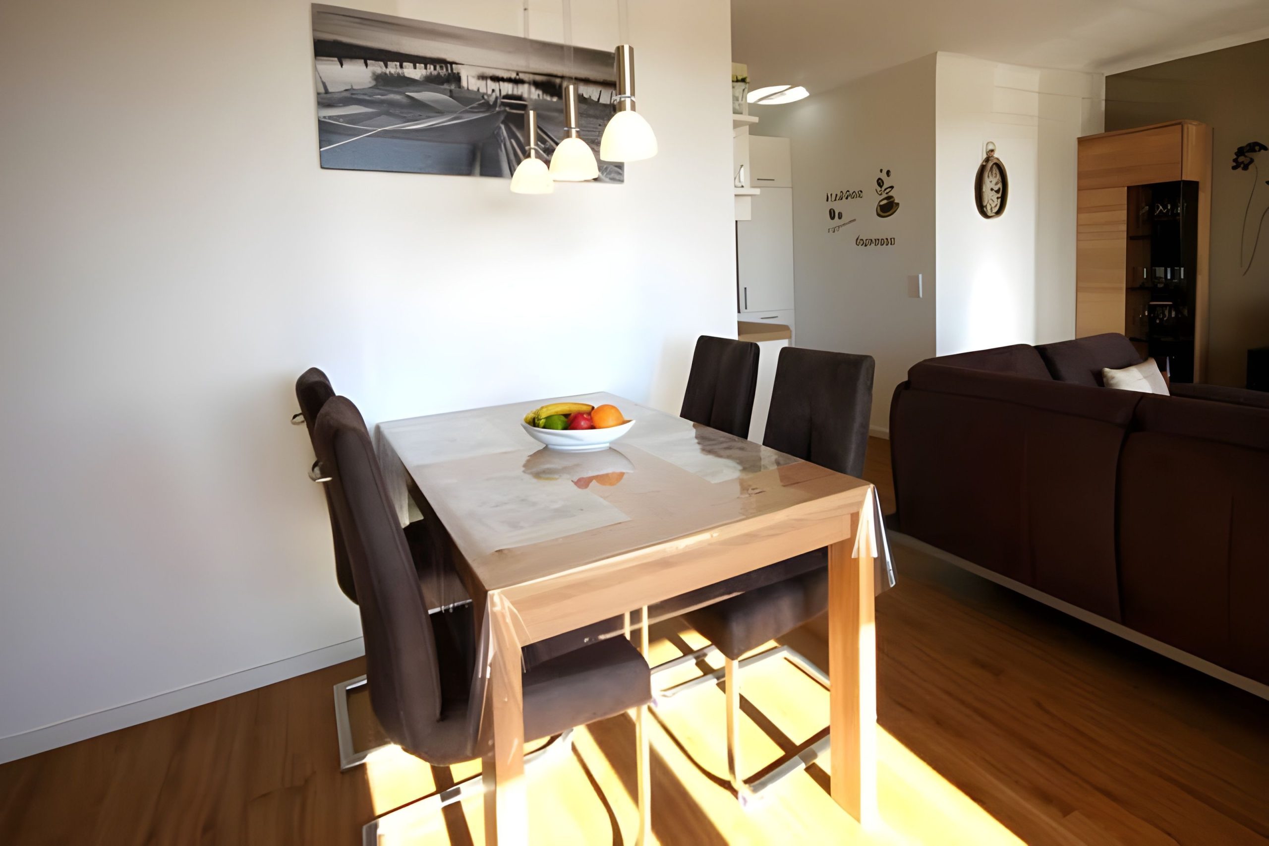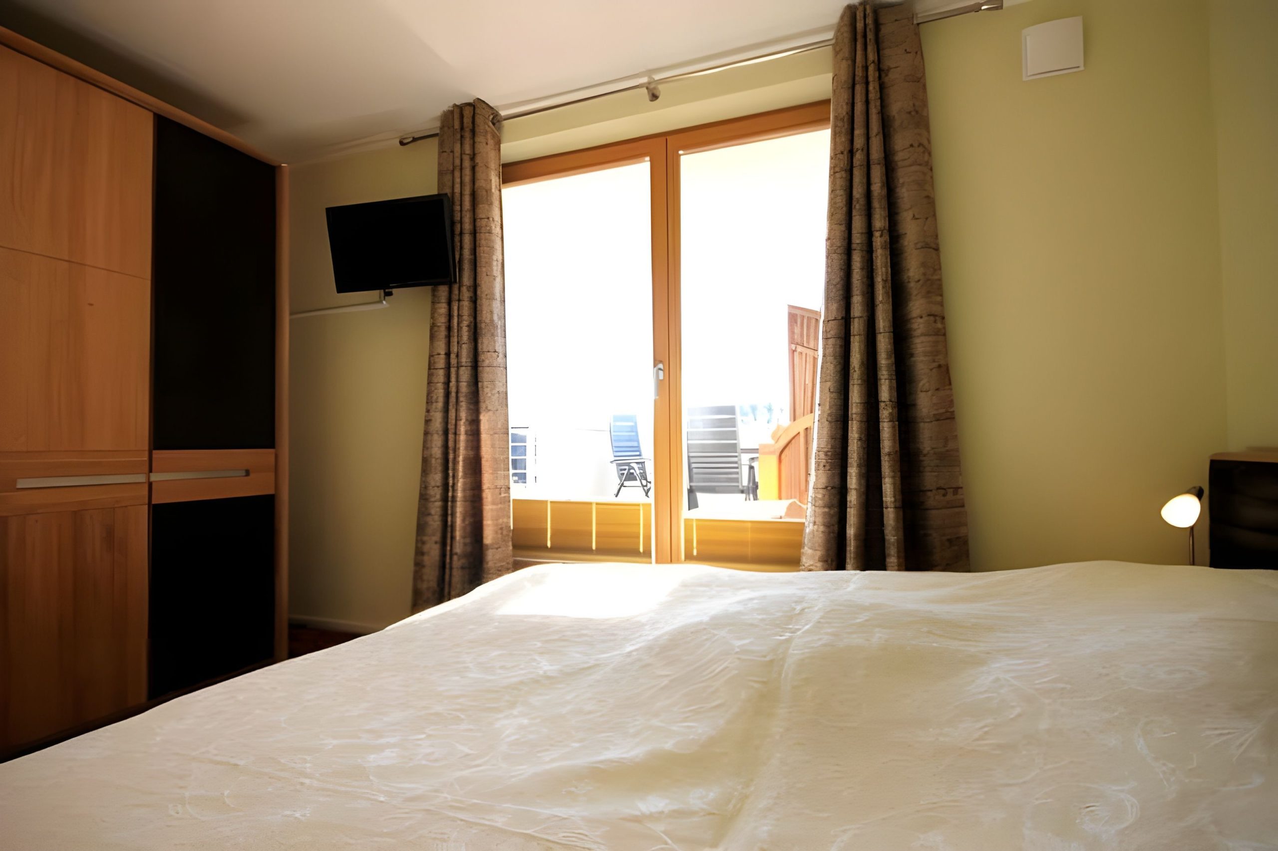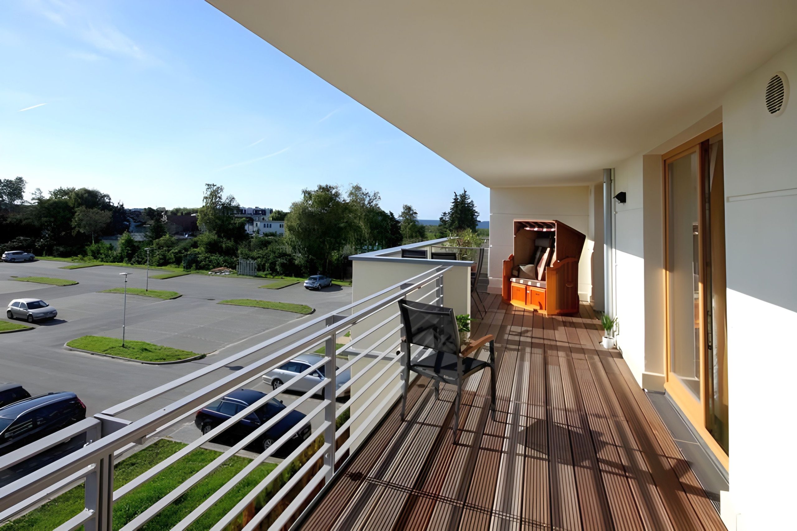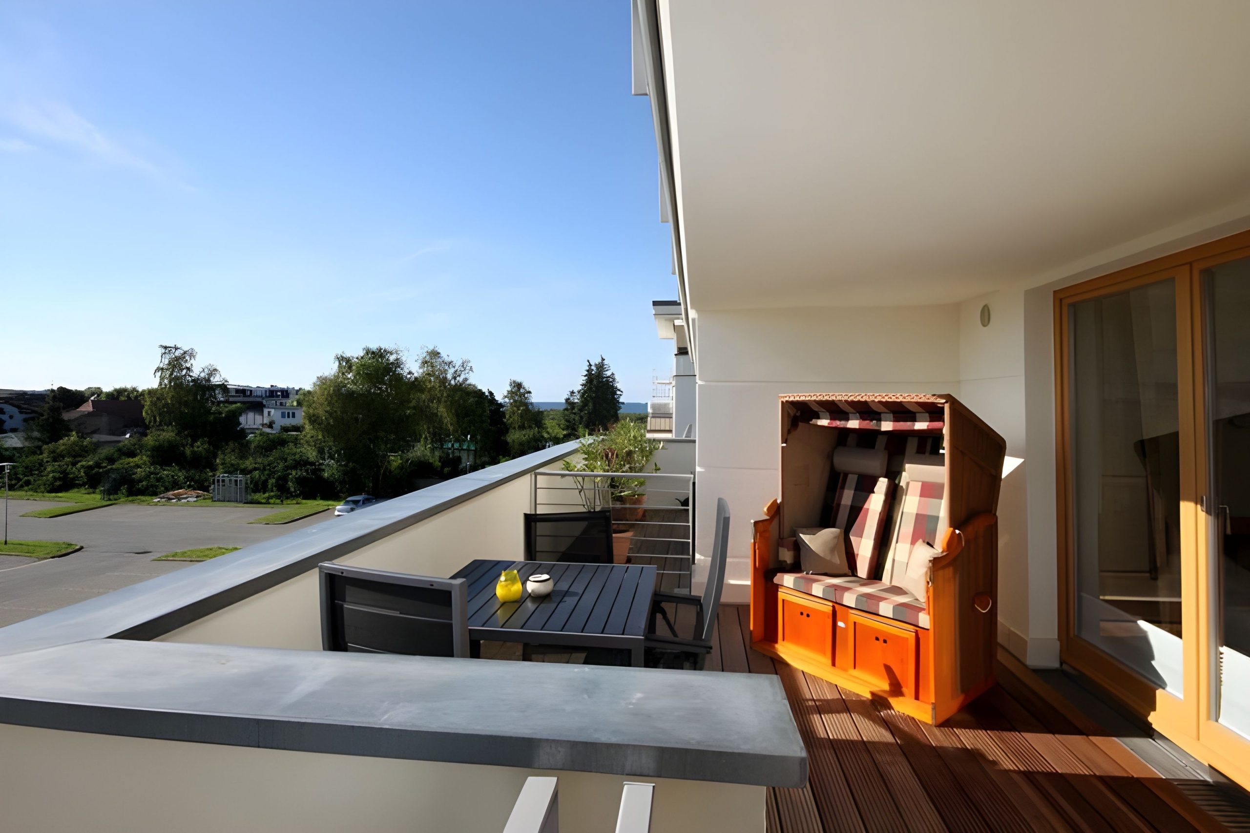 Das SCHLAFZIMMER ist mit einem hochwertigen Doppelbett ausgestattet. Dazu gehören zwei kleine Nachttische mit Leseleuchten. Die Beleuchtung vom zweitürigen Kleiderschrank kann über einen Funkschalter bedient werden. Ein 26 Zoll großer Flachbildfernseher steht ebenfalls zur Verfügung. Verdunklungsplissees und zusätzlich installierte geschmackvolle Gardinen garantieren eine erholsame Nachtruhe. Sie gelangen vom Schlafzimmer ebenso wie auch vom Wohnzimmer auf die großzügige DACHTERRASSE. Im WOHNZIMMER erwartet Sie eine bequeme L-förmige hochwertige Couch von der aus Sie sowohl auf den großen 3D-Flatscreen-TV mit Blu-ray-Player als auch auf die Landschaft Richtung „Conventer See“ blicken können. Zur Unterhaltung steht eine kleine Spiele- und Büchersammlung zur Verfügung. Im offenen Küchen- und Essbereich finden Sie eine mit allem Komfort ausgestattete EINBAUKÜCHE. Sie verfügt über ein 4-Zonen Cerankochfeld, Backofen, Kühlschrank mit Gefrierfach, Mikrowelle, Kaffeemaschine, Toaster und Eier- sowie Wasserkocher. Im Essbereich steht ein großer geschmackvoller Tisch mit 4 bequemen Swing-Stühlen, von denen man ebenfalls die Landschaft und den Fernseher gut im Blick behält. Zusätzlich gibt es einen großen geräumigen ABSTELLRAUM, in dem Koffer, Schuhe, Getränke usw. abgestellt werden können. Das moderne DUSCHBAD bietet Ihnen eine große bodengleiche Dusche mit Regenbrause. Außerdem ist es mit einer Fußbodenheizung; wie alle anderen Räume auch, einem Waschtisch inklusive Spiegel, einem Haartrockner und einem Kosmetikspiegel ausgestattet. Auf der nach Westen gelegenen DACHTERRASSE können Sie die Sonne von morgens bis abends genießen. Der zusätzliche, seitliche Blick auf die Ostsee vom STRANDKORB verspricht einen erholsamen Urlaub. Ergänzt wird die Balkonausstattung von einem Tisch mit vier Stühlen. Zusätzlich steht Ihnen ein KOSTENFREIER TIEFGARAGENPLATZ sowie ein ABSCHLIESSBARER FAHHRADRAUM IN der VILLA SEEADLER (Nachbargebäude - ca. 15 m) zur Verfügung. Bitte beachten Sie die DURCHFAHRTSHÖHE zur Tiefgarage von max. 1,90 m(!). Der im Gebäude installierte Aufzug erleichtert den Transport der mitgebrachten Koffer und Taschen: HINWEISE: Das kostenfreie WLAN in der Unterkunft ist ausschließlich für die Verwendung von Social Media und den Austausch von Bildern mit Familie und Freunden gedacht. Die Nutzung zum Streamen von Filmen ist nicht vorgesehen. Es handelt sich um eine Nichtraucherwohnung. Es sind KEINE HAUSTIERE erlaubt. Ein Wäscheset kann kostenpflichtig zugebucht werden. Eine Waschmaschine und ein Trockner stehen im separaten Hauswirtschaftsraum im Erdgeschoss des Objekts zur Verfügung (gegen Gebühr/ Münzautomat). Sichern Sie sich den Anspruch auf einen der begehrten STRANDKÖRBE nur ein paar Meter entfernt von den rauschenden Wellen der Ostsee (Anfang Mai - Ende August) und buchen Sie jetzt zu besonderen Konditionen (12,00 € pro Tag oder 75,00 € pro Woche).