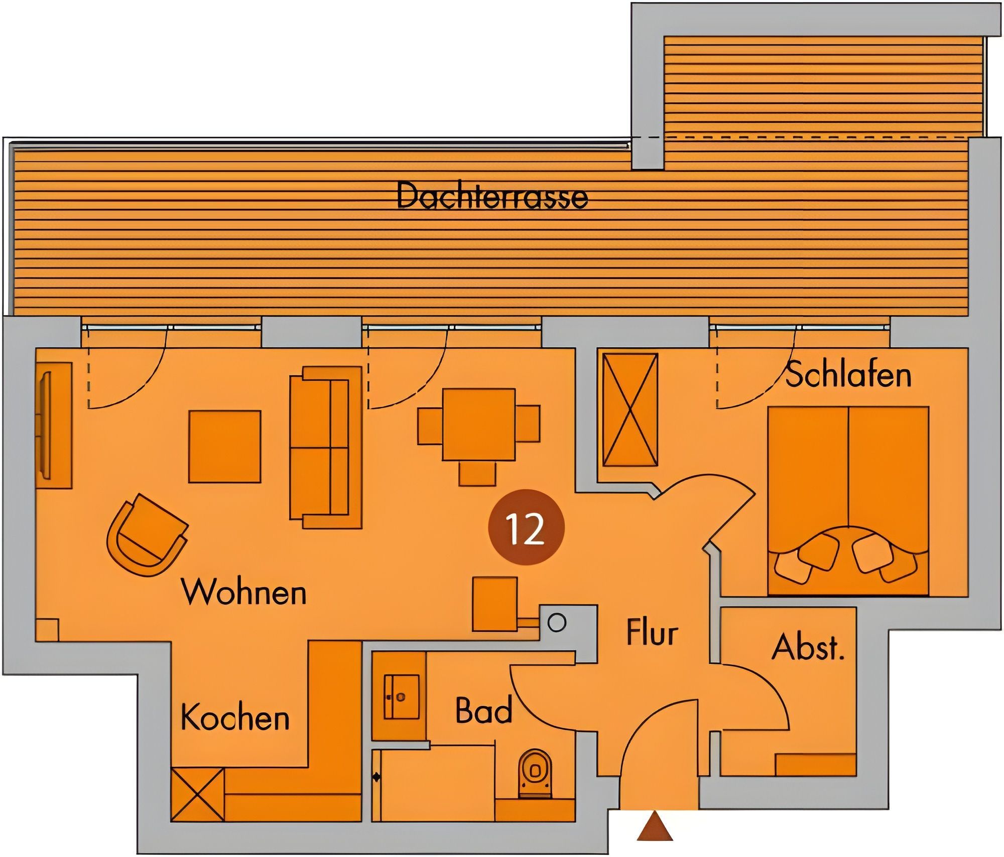 STRANDNAHE SONNIGE 2-RAUM-WOHNUNG FÜR MAX. 2 ERWACHSENE, MIT GROSSER DACHTERRASSE (SÜD-WEST AUSRICHTUNG) INKLUSIVE STRANDKORB IM 2. OG.