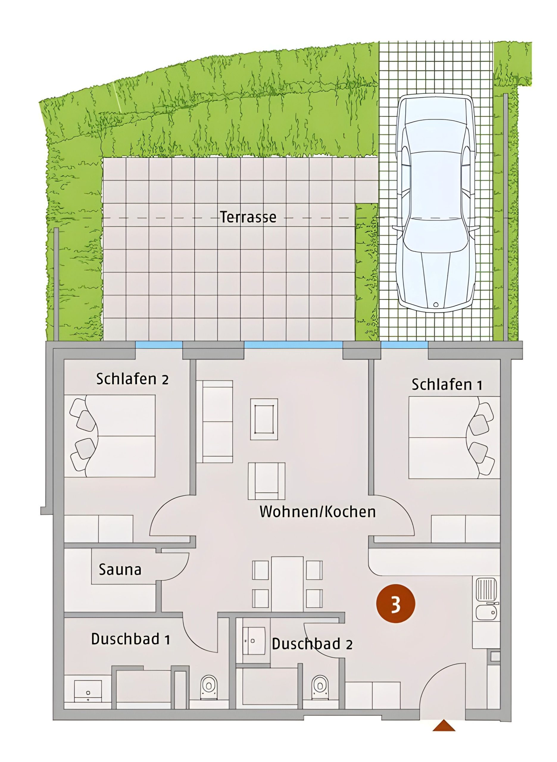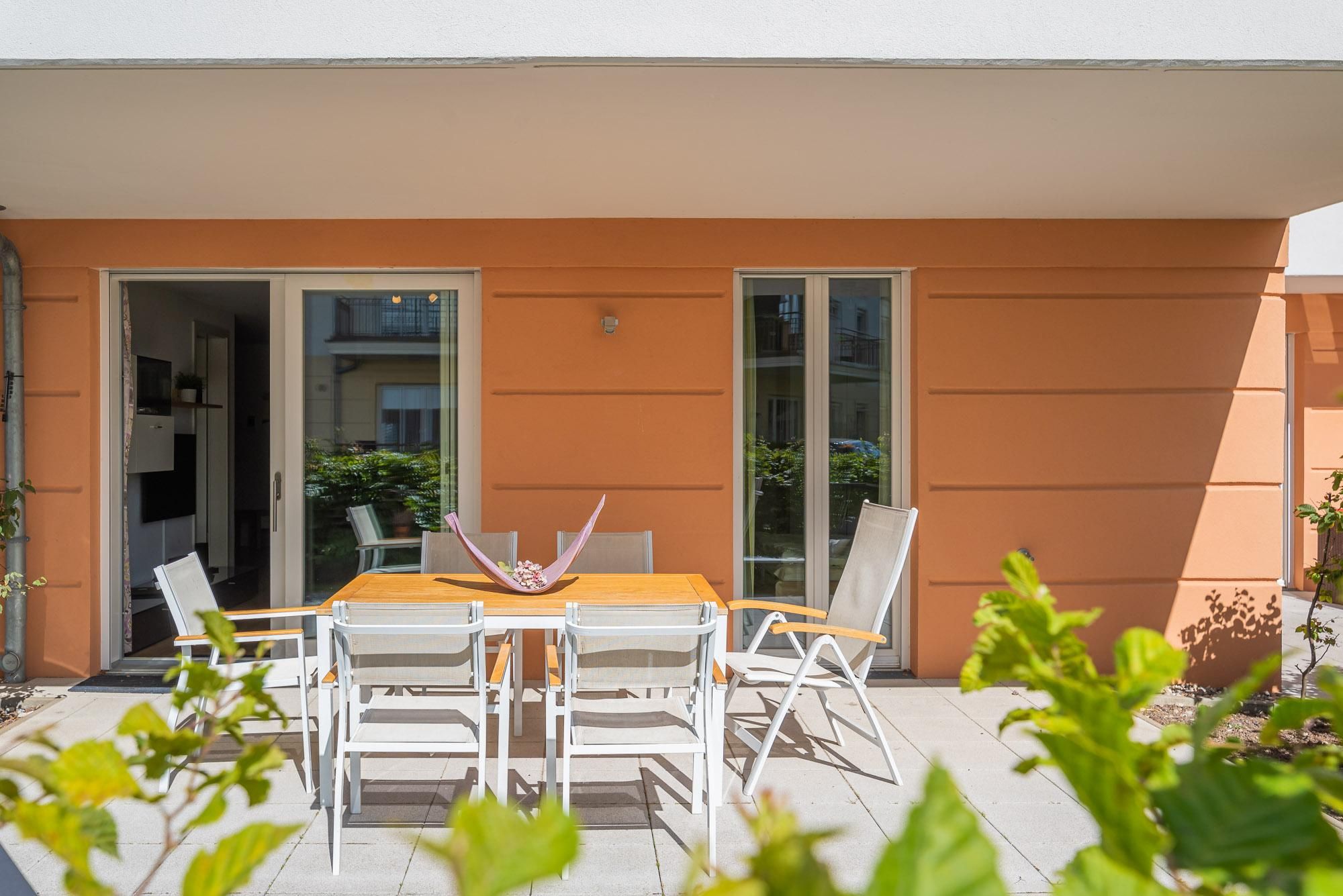 Die großzügige Villa Seeadler WE 03 in Börgerende bietet auf ca. 75 m² Platz für bis zu sechs Personen. Sie verfügt über zwei Schlafzimmer, ein Badezimmer mit Dusche und Badewanne sowie ein zusätzliches Gäste-WC. Zur Ausstattung gehören eine moderne Küche mit Spülmaschine, WLAN, Kabel-TV und ein eigener Terrassenbereich mit Gartenmöbeln. Ein Privatparkplatz, Sauna...