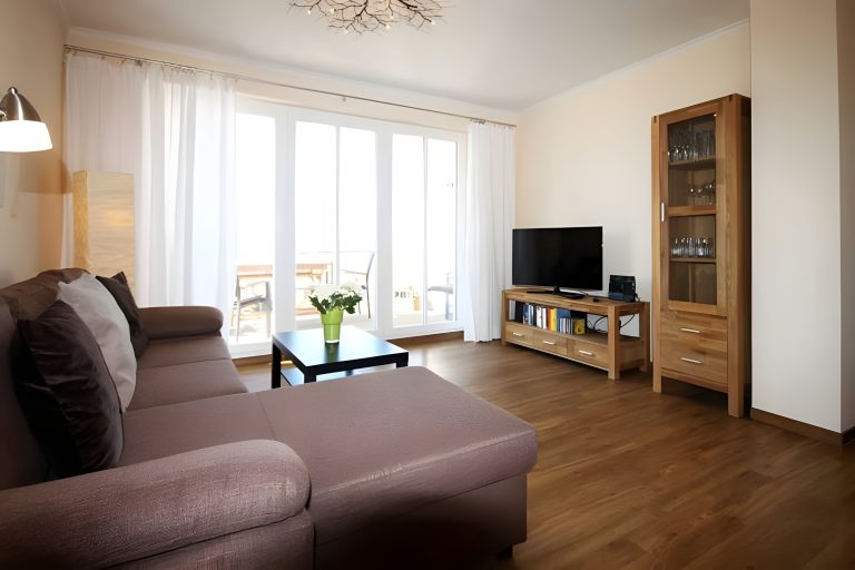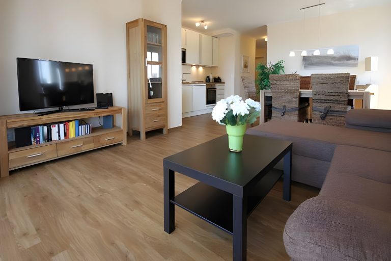 Diese Ferienwohnung besticht durch den großen ECKBALKON in Südwestausrichtung. Hier können Sie die Sonne vom Morgen bis in den späten Nachmittag genießen. Der WOHNBEREICH empfängt Sie mit einer L-förmigen Schlafcouch plus Sessel. Einen TV-Gerät inklusive Radio und DVD-Player sorgt für Unterhaltung. Der OFFENE KOCH- UND ESSBEREICH bietet Ihnen eine voll ausgestattete Einbauküche. Hier finden Sie eine Mikrowelle, einen Backofen, Cerankochfeld, Geschirrspüler und Kühlschrank, inklusive Gefrierfach. Toaster, eine Kaffeemaschine und Wasserkocher sind natürlich auch vorhanden. Am Esstisch, der sich bei Bedarf ausziehen lässt, stehen vier Stühle bereit. Im SCHLAFZIMMER finden Sie dann ein Doppelbett (1,60 x 2,00 m) mit eingebautem Bettkasten. Der zweitürige Kleiderschrank und eine Kommode bieten genügend Stauraum für die Unterbringung der Bekleidung. Das DUSCHBAD besitzt einen fußbodengleichen Duscheinstieg. Weiterhin einen Waschtisch und einen Handtuchtrockner. Den schönen großen BALKON erreichen Sie sowohl vom Wohn- als auch vom Schlafzimmer aus. Der zur Wohnung gehörende und kostenfreie PKW-STELLPLATZ, ist ca. 30 m vom Objekt entfernt. Für die Fahrräder ist in der TIEFGARAGE ein separater ABSCHLIESSBARER FAHRRADRAUM eingerichtet. Hier finden Sie auch einen Aufzug, um Ihr Urlaubsgepäck entspannt in die Ferienwohnung zu befördern. Des Weiteren stehen im Waschraum im Erdgeschoss, eine Waschmaschine und ein Wäschetrockner für Gäste zur Verfügung. Diese sind kostenpflichtig. Halten Sie 50 Cent Münzen für die Nutzung bereit. Noch einige HINWEISE: In dieser Wohnung steht KEIN WLAN zur Verfügung. Wäscheset, Kinderreisebett und Kinderhochstuhl können kostenpflichtig zugebucht werden. HAUSTIERE sind mit AUFPREIS erlaubt. Kosten: 10,00 EUR pro Übernachtung und einer Einmalzahlung von 25,00 EUR für die Haustierendreinigung. Hundestrände finden Sie in Richtung Heiligendamm in ca. 500m Entfernung. Ab Aufgang 9. In Richtung Nienhagen ab Aufgang 1. Sichern Sie sich zusätzlich den Anspruch auf einen der begehrten STRANDKÖRBE nur ein paar Meter entfernt von den rauschenden Wellen der Ostsee (Anfang Mai - Ende August) und buchen Sie jetzt zu besonderen Konditionen (12,00 € pro Tag oder 75,00 € pro Woche).