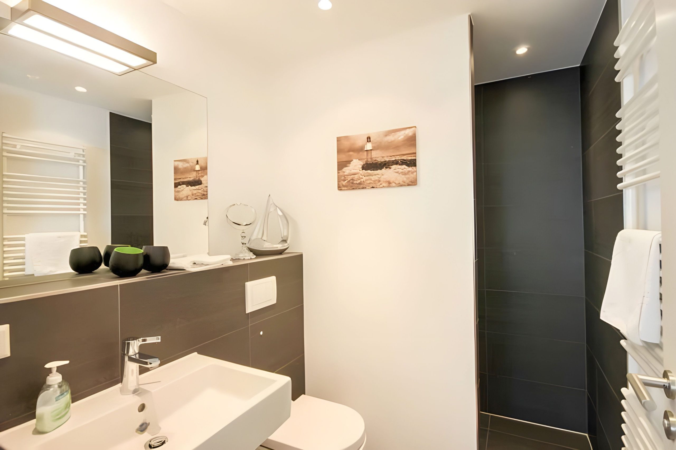 Die Villa Seeadler WE 17 überzeugt mit moderner Ausstattung auf ca. 71 m², zwei Schlafzimmern, offenem Wohnbereich und kostenlosem Privatparkplatz. Sie genießen eingeschränkten Meerblick vom Balkon und profitieren von WLAN, Aufzug, einer voll ausgestatteten Küche sowie Nähe zum Strand und zu Restaurants.