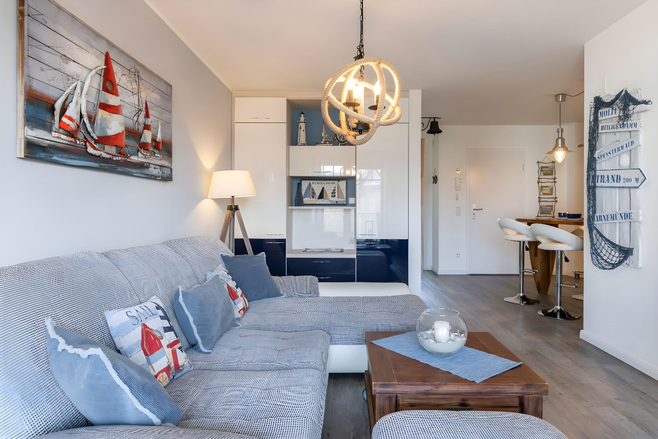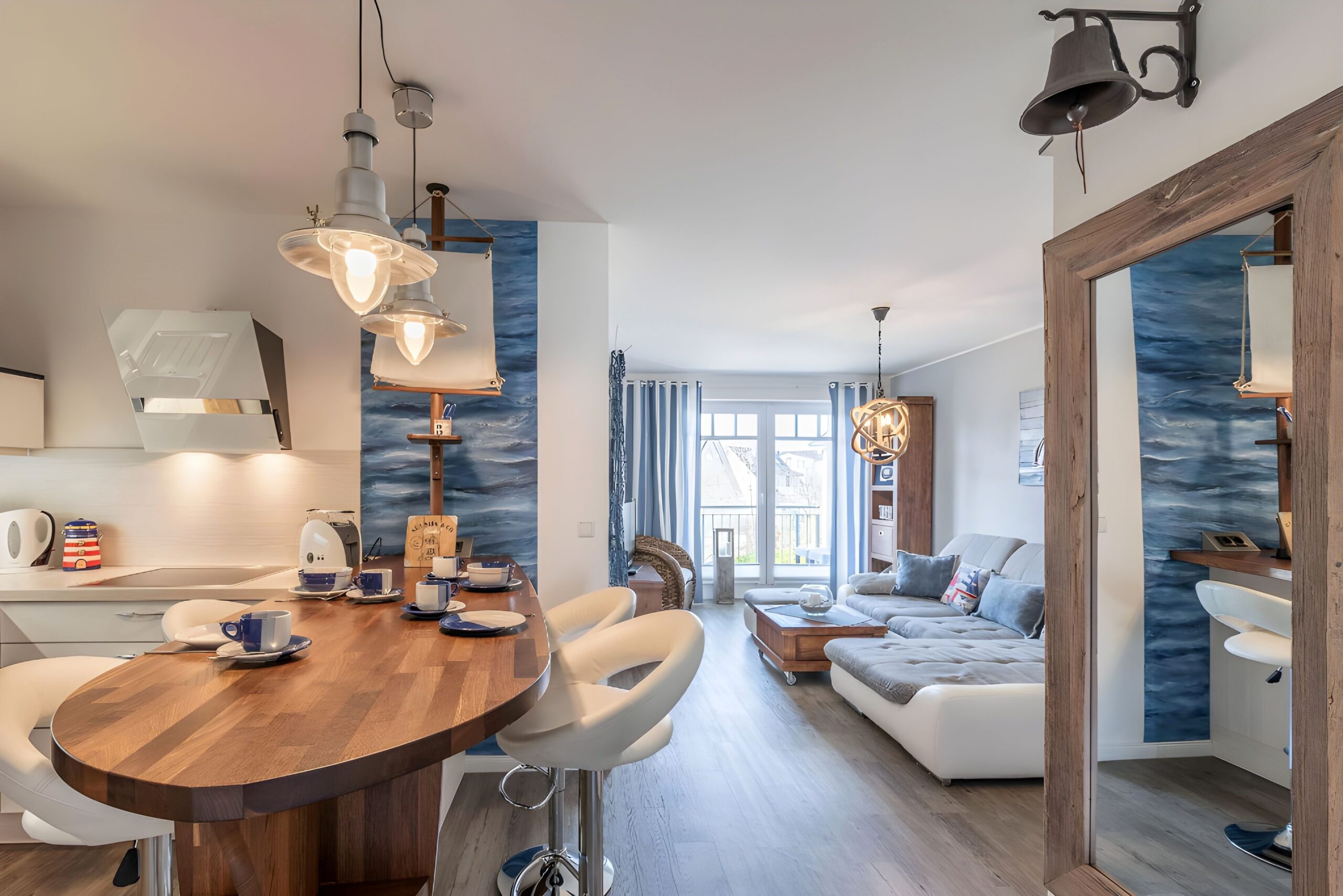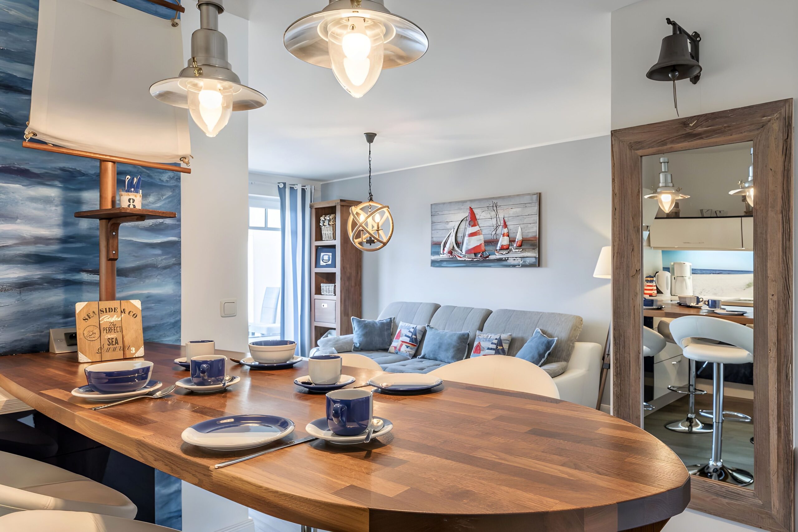 Wunderschöne, liebevoll eingerichtete maritime Ferienwohnung in Strandnähe mit kleinem Meerblick vom Balkon. Sehr gepflegt und durchdacht.