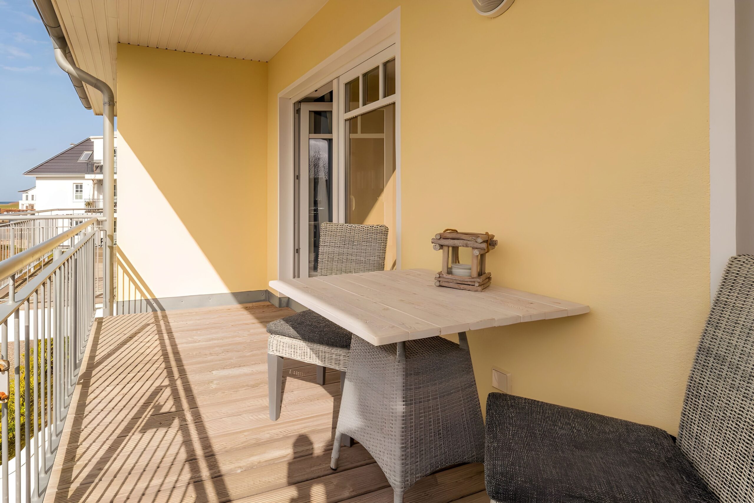 Großer, schöner überdachter Balkon in ruhiger Lage mit kleinem Meerblick. Geschmackvolle, durchdachte Einrichtung im maritimen Stil. Sehr gepflegt durch engagierte Eigentümer.
