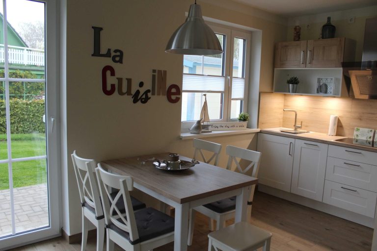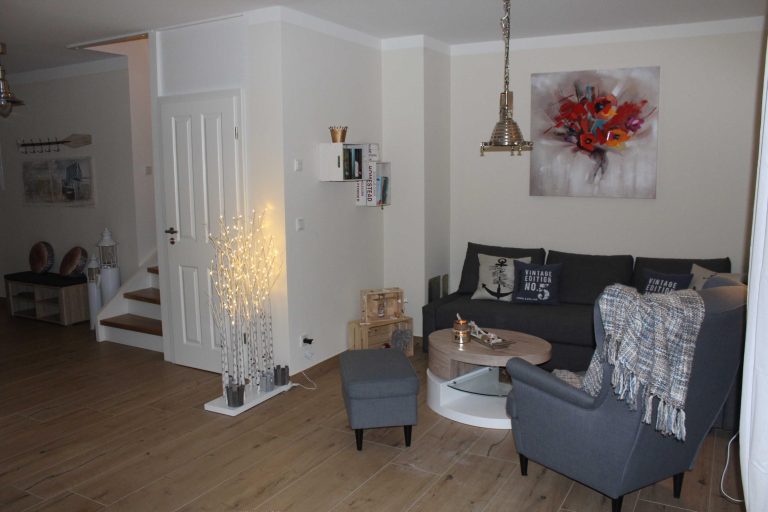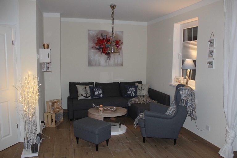Der WOHN-/ ESSBEREICH ist mit einer bequemen Schlafcouch, einem Sessel sowie einem großen Flachbild-TV, einer Stereoanlage und einem Blu-ray-Player ausgestattet. In der offenen KÜCHE finden Sie einen Herd mit Cerankochfeld, Backofen, Geschirrspüler, Kühlschrank mit Gefrierfach, Toaster, Wasserkocher und eine Filterkaffeemaschine sowie weiteres Kochzubehör. Hier lädt auch ein hölzerner Esstisch zu gemeinsamen Mahlzeiten ein. Im angrenzenden modernen BAD finden Sie eine bodengleiche Dusche, einen Waschtisch mit Spiegel, Föhn und einen Handtuchtrockner vor. Ein Doppelbett empfängt Sie im SCHLAFZIMMER. Das Bett hat eine durchgehende Matratze. Hier befindet sich auch ein zweites Fernsehgerät und ein großzügiger Kleiderschrank. Von diesem Raum und auch vom Wohnbereich aus, können Sie den BALKON betreten, der nach Süd-Ost ausgerichtet ist. Ein maritimer Strandkorb sowie ein Tisch mit vier Balkonstühlen, sorgen für Entspannung. Sämtliche Räume der Unterkunft sind mit einer Fußbodenheizung ausgestattet worden. Zu Ihrer Ferienwohnung gehört ein KOSTENFREIER TIEFGARAGENSTELLPLATZ. Bitte beachten Sie die DURCHFAHRTSHÖHE von max. 1,90m! Bei Überschreitung der maximalen Durchfahrtshöhe ihres Fahrzeugs, besteht die Möglichkeit auf einen kostenpflichtigen Parkplatz in unmittelbarer Nähe auszuweichen. Zudem befindet sich in der Tiefgarage eine Abstellmöglichkeit für Ihre FAHRRÄDER.