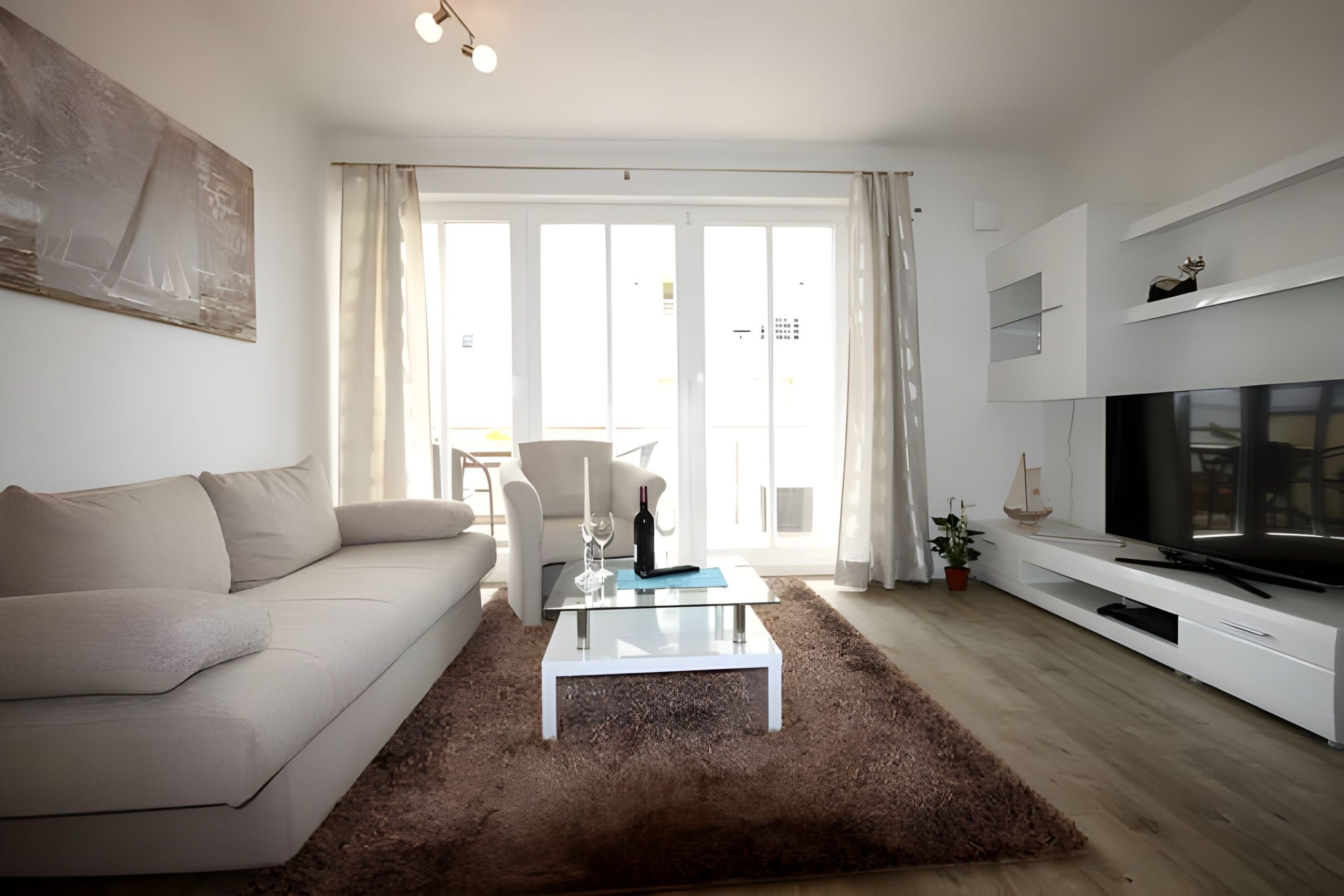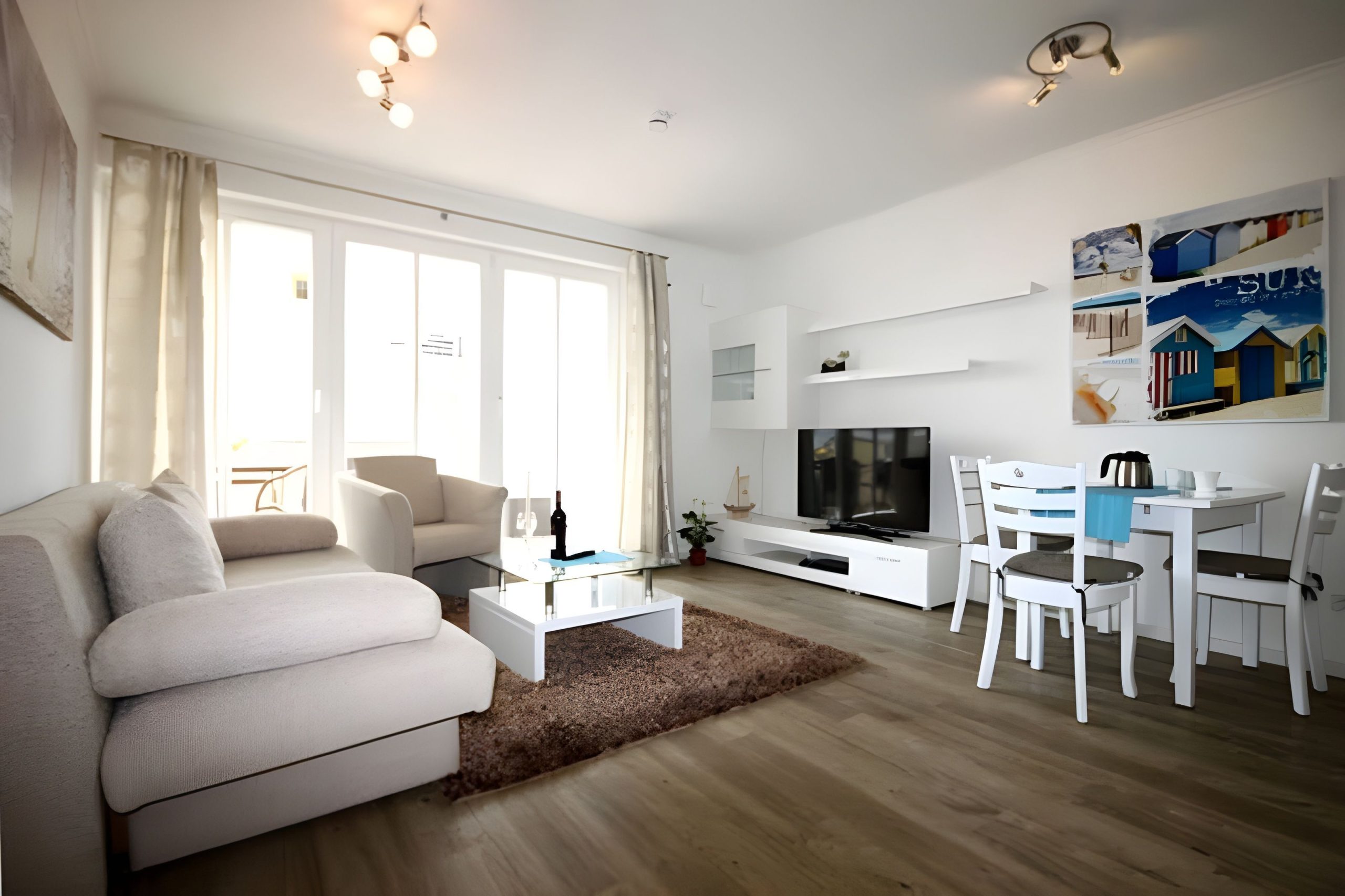 STRANDNAHE KOMFORTABLE 2-RAUMWOHNUNG FÜR 3 PERSONEN MIT GROSSEM BALKON IM 1. OG.