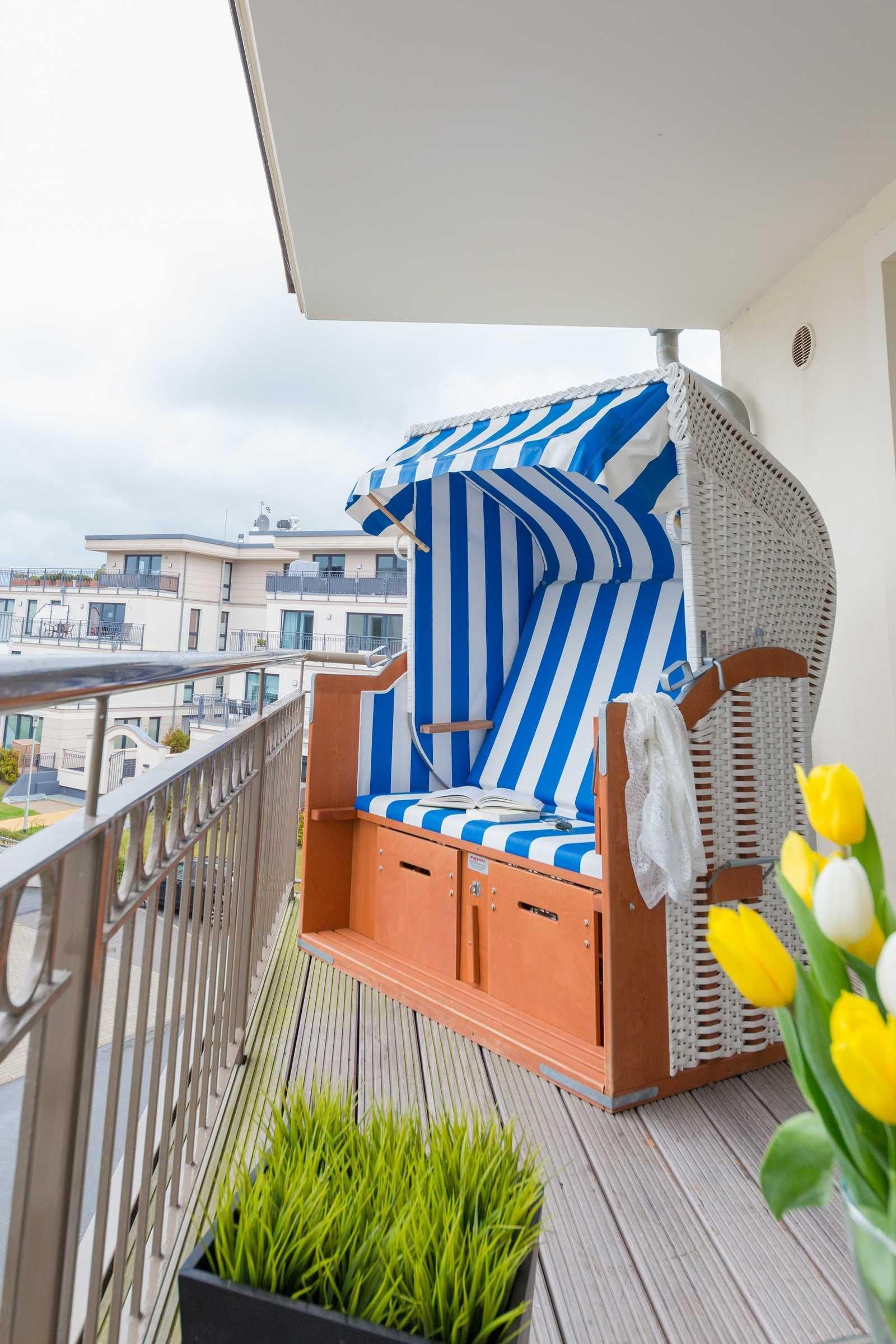 Der herrliche Balkon in Nord-Westausrichtung mit Blick auf die Ostsee ist mit