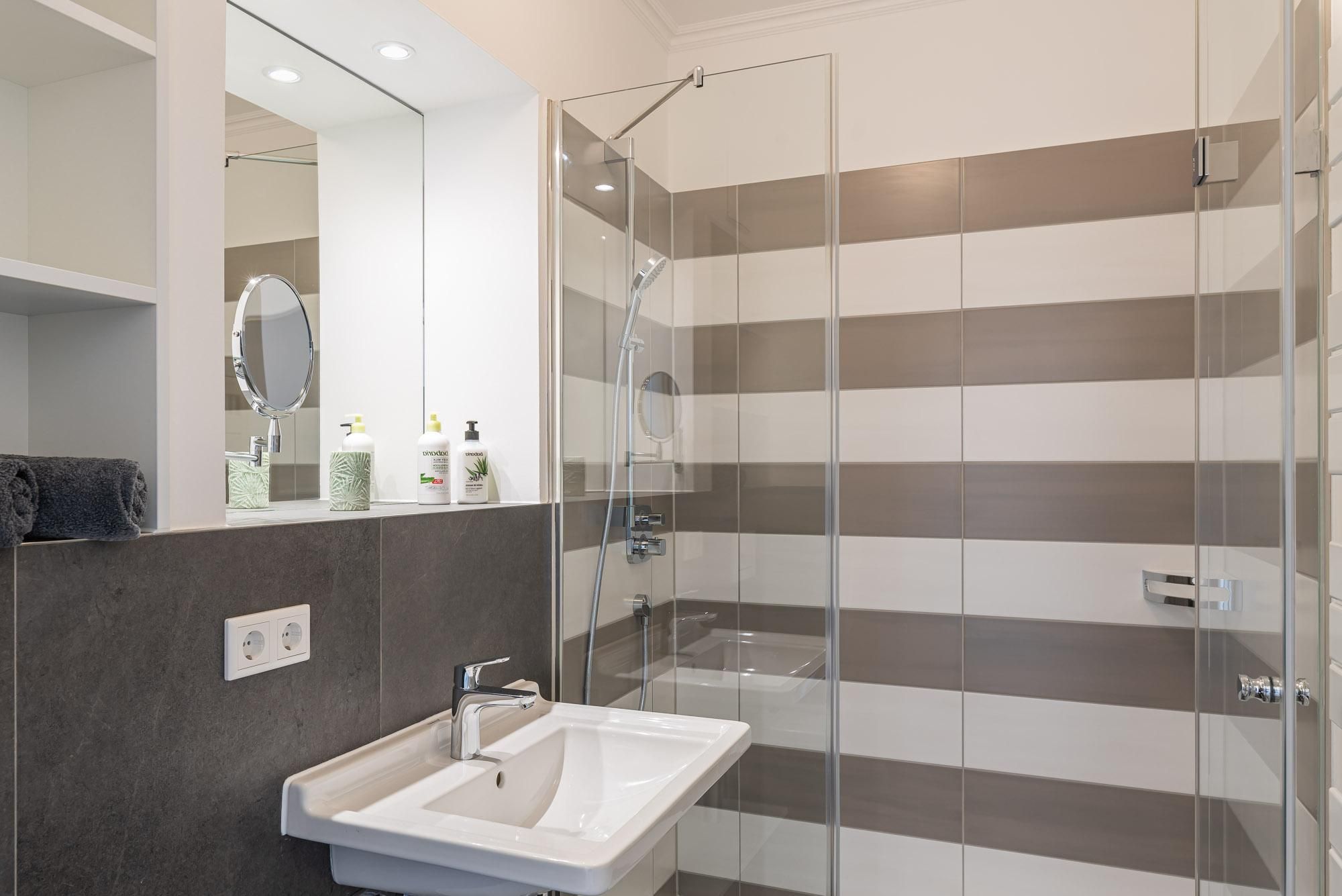 Handtuchtrockner und einen Kosmetikspiegel. Zu Ihrem Apartment gehört ebenfalls
