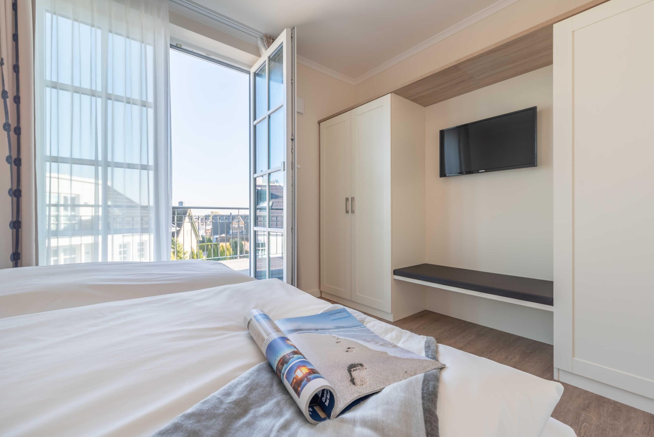 The spacious 85 m² apartment “Haus Strandhafer WE 08 Strandjuwel” in Börgerende offers two bedrooms, an open-plan kitchen with dishwasher and modern appliances, a bathroom with walk-in shower, free Wi-Fi, cable TV, a private balcony with sea view, and a free parking space. Children are welcome.