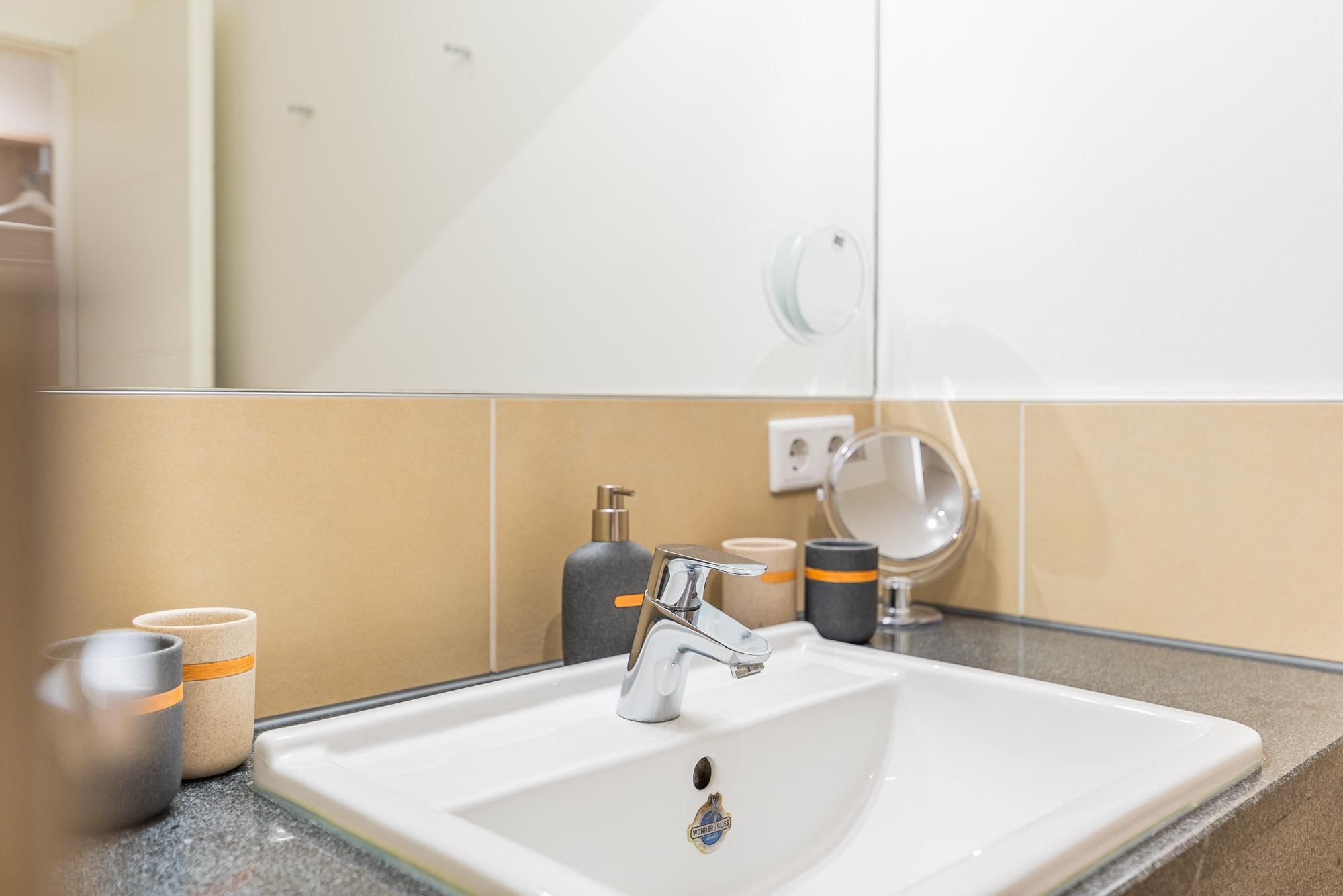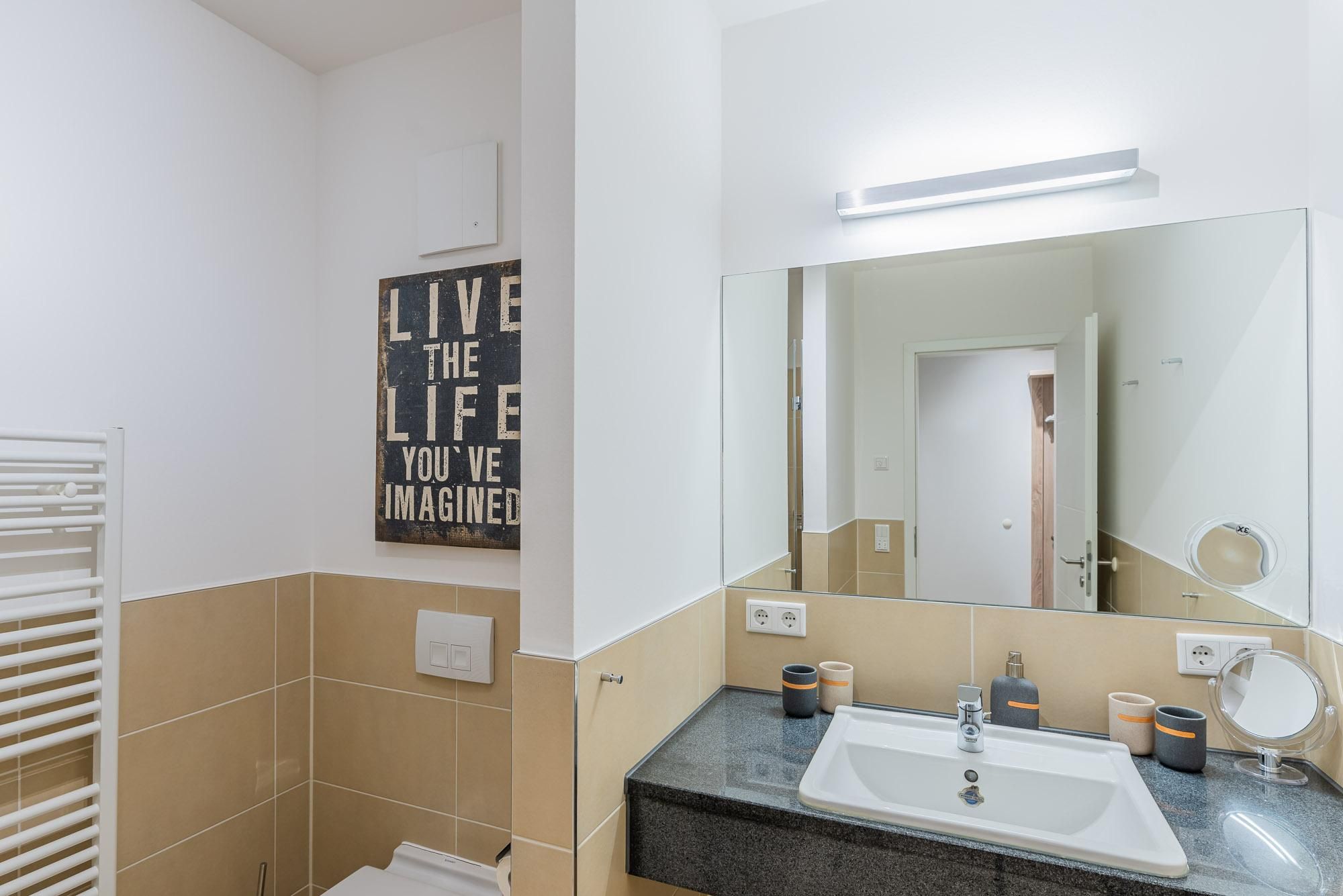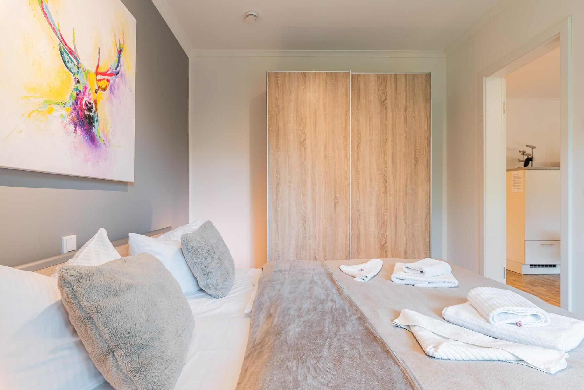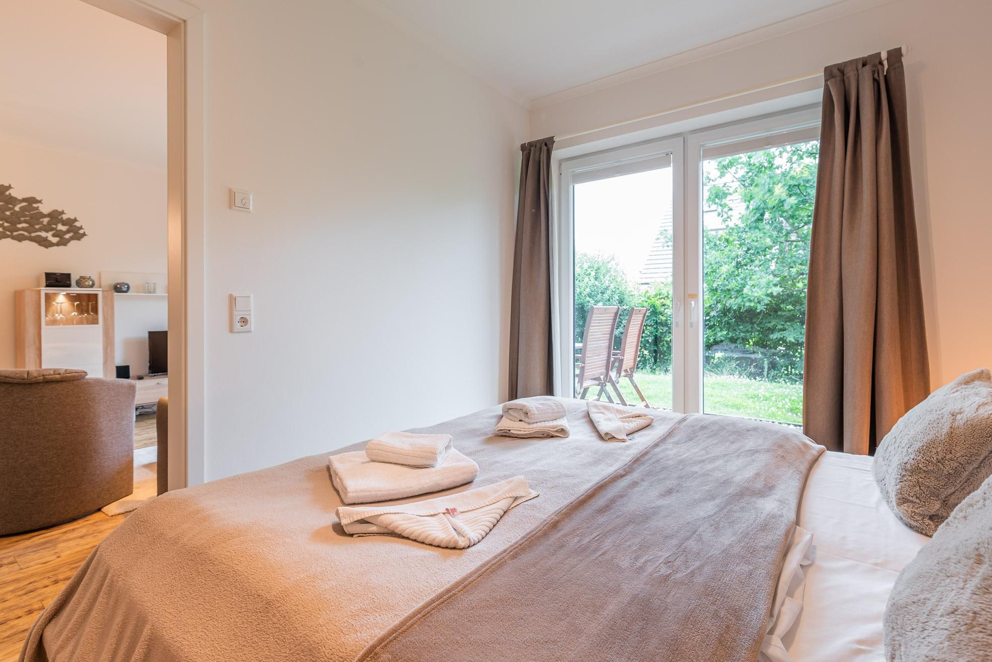 The Residenz Seestern WE 10 "Gartenlounge" offers a 48 m² ground floor apartment with a terrace, garden access, and modern amenities. Features include an open-plan kitchen with dishwasher, cable TV, free Wi-Fi, communal washer and dryer, private parking, and is suitable for up to three guests. Pets are allowed (one maximum).