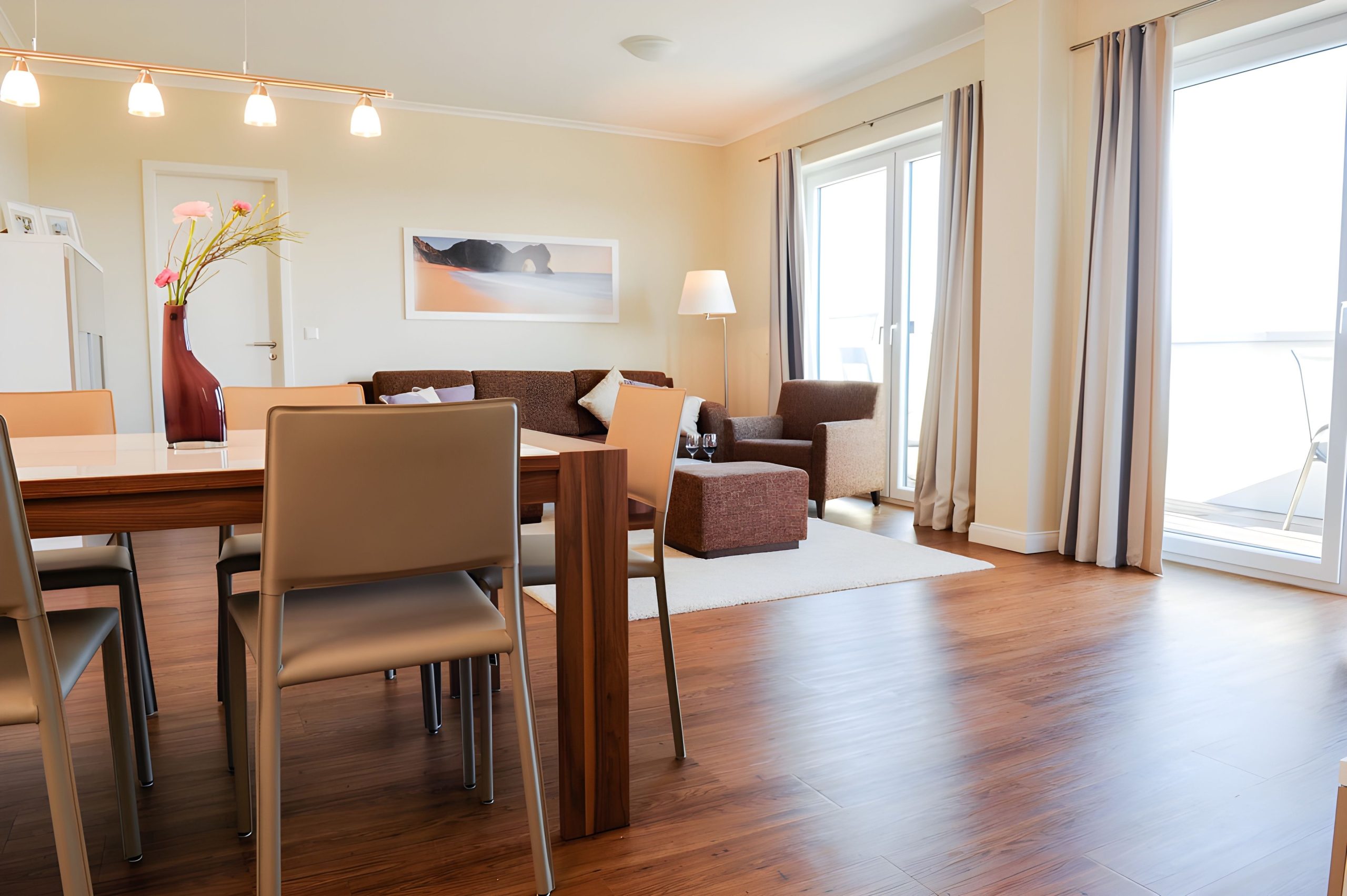 A particular highlight of this penthouse is the balcony with a direct view of the Baltic Sea. Here, you can enjoy fresh seaside air and marvellous sea views at any time of the day.